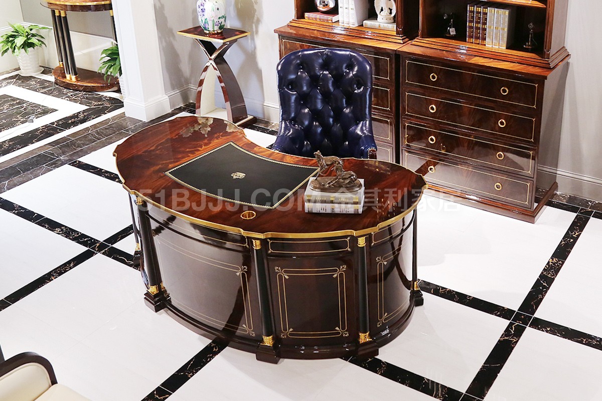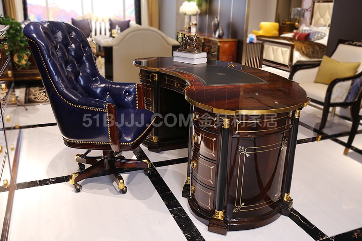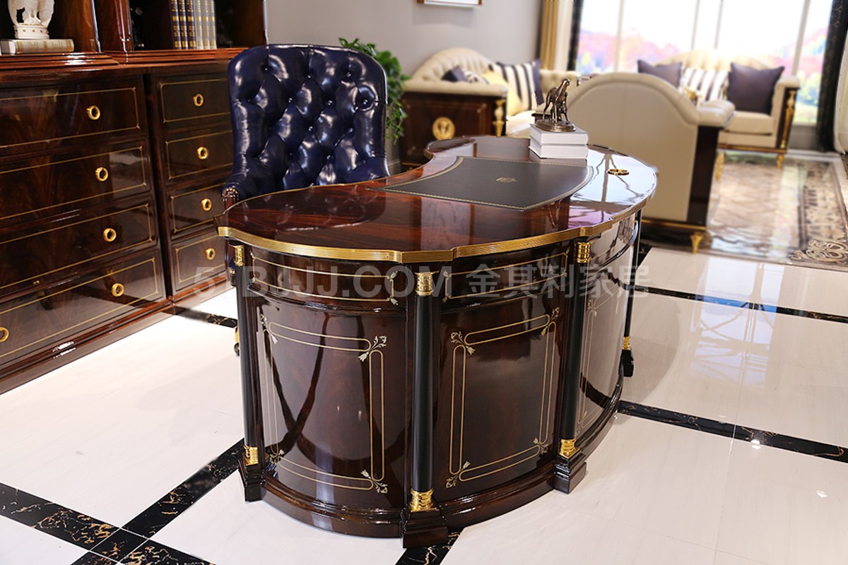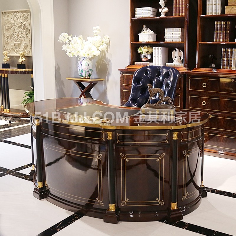 奧斯卡書桌 銅條貝殼冷壓鑲嵌真皮燙金桌面 牛津印象系列 英式實木書桌