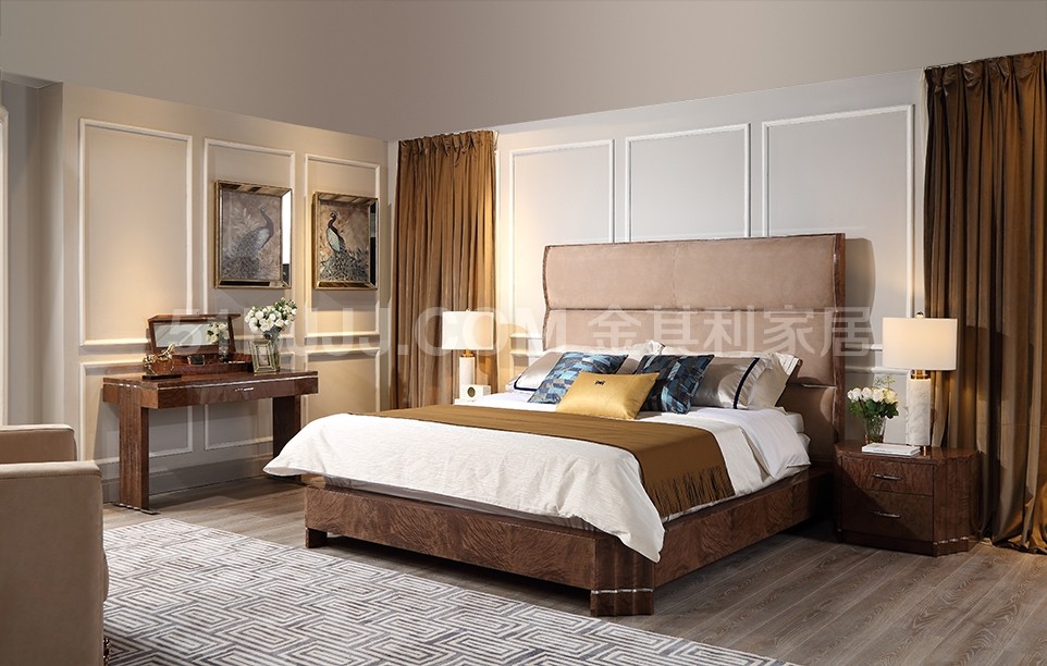后現代時尚FD系列大床 薄木拼花金屬鑲嵌 簡約時尚輕奢 低奢臥室組合