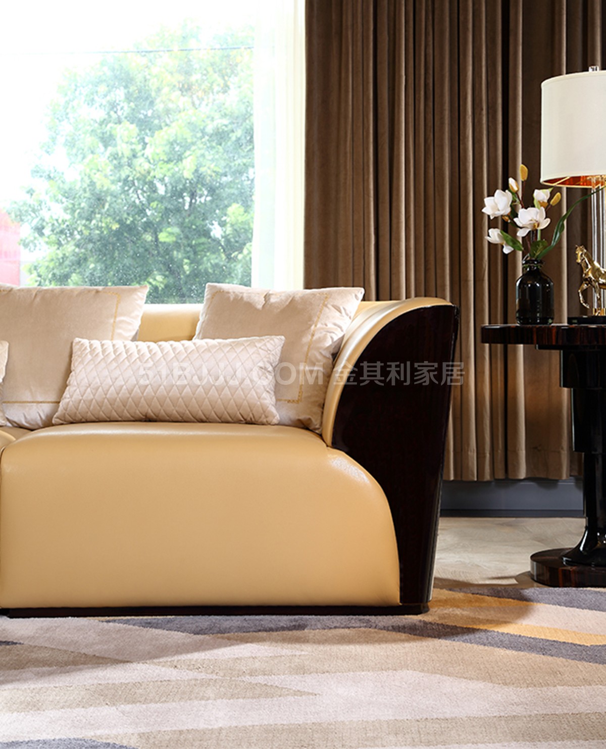 后現代鋼琴漆真皮沙發 金其利低奢后現代 輕奢客廳家具
