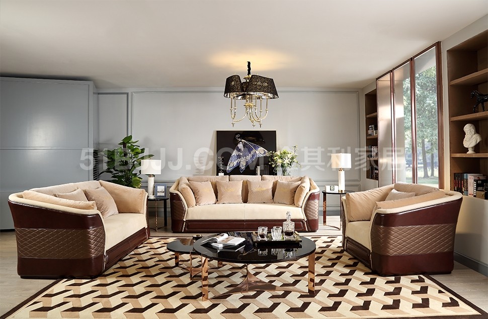 后現代牛皮菱形格沙發 輕奢客廳家具 時尚