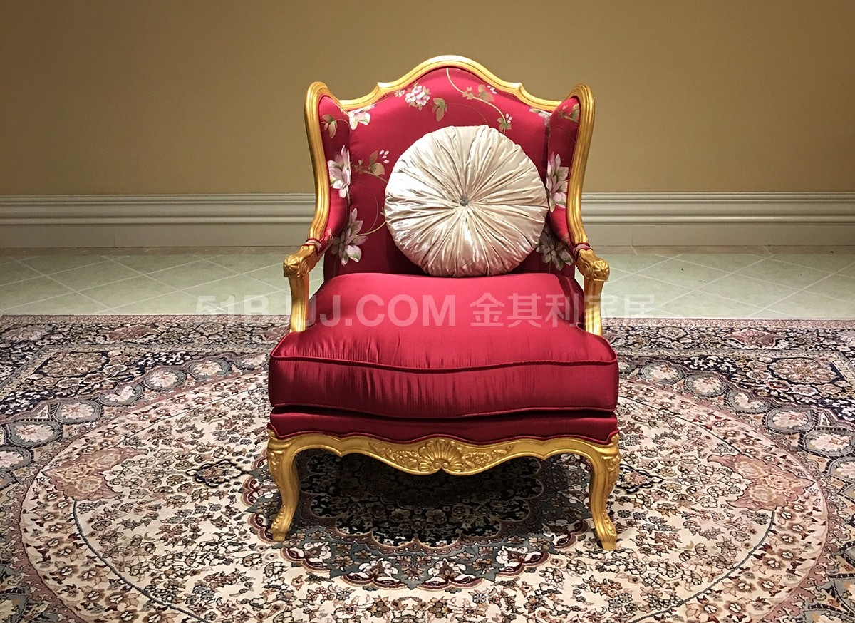 意式宮廷風單人休閑椅 意式法式歐式金雕貼箔休閑椅