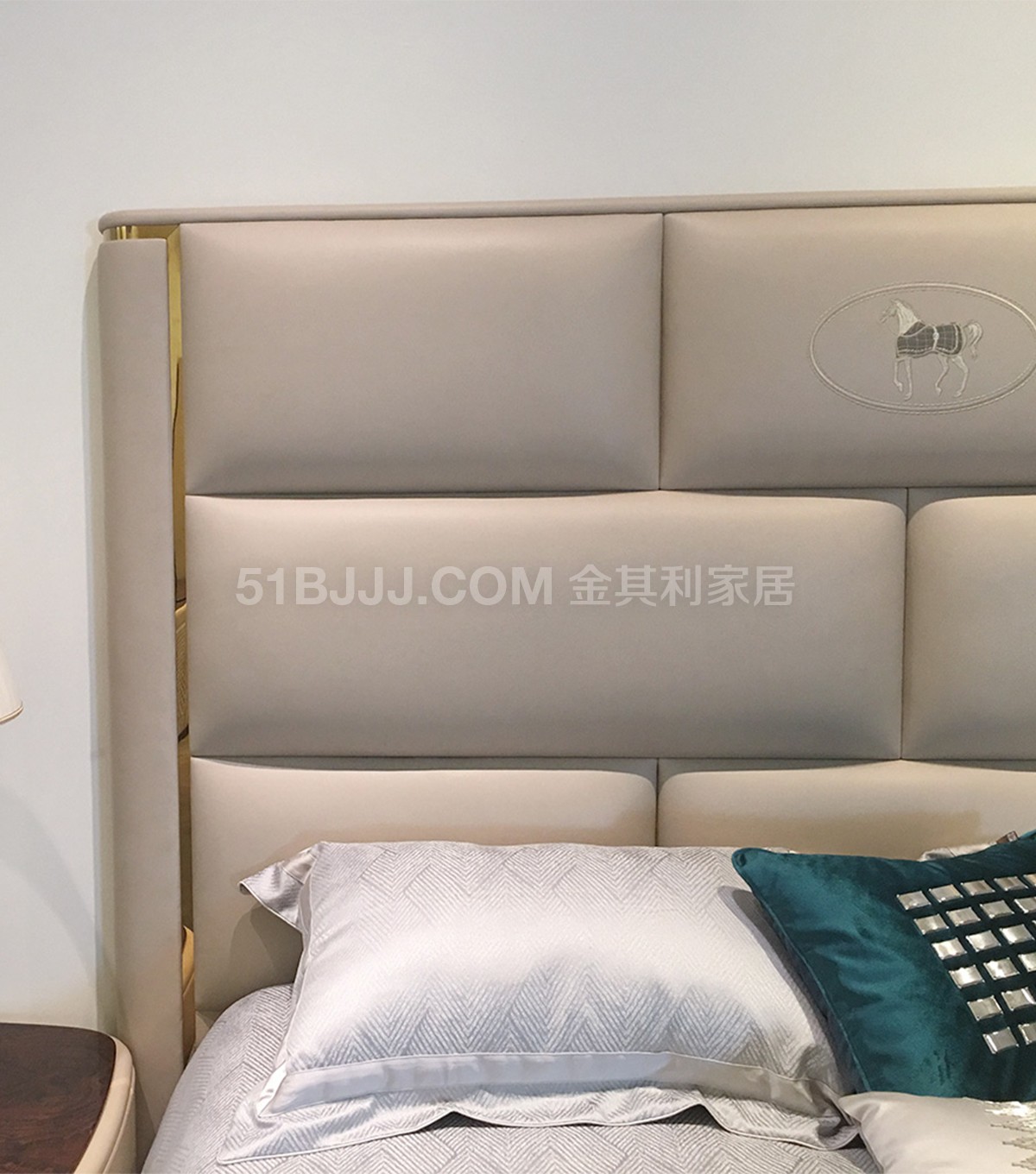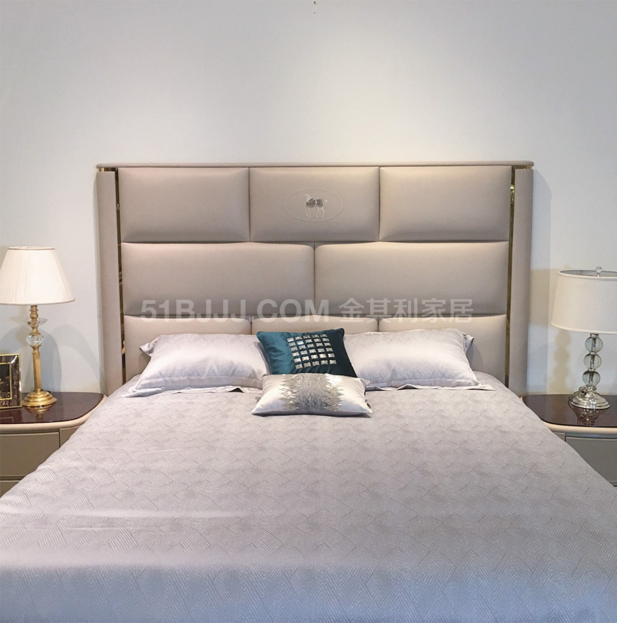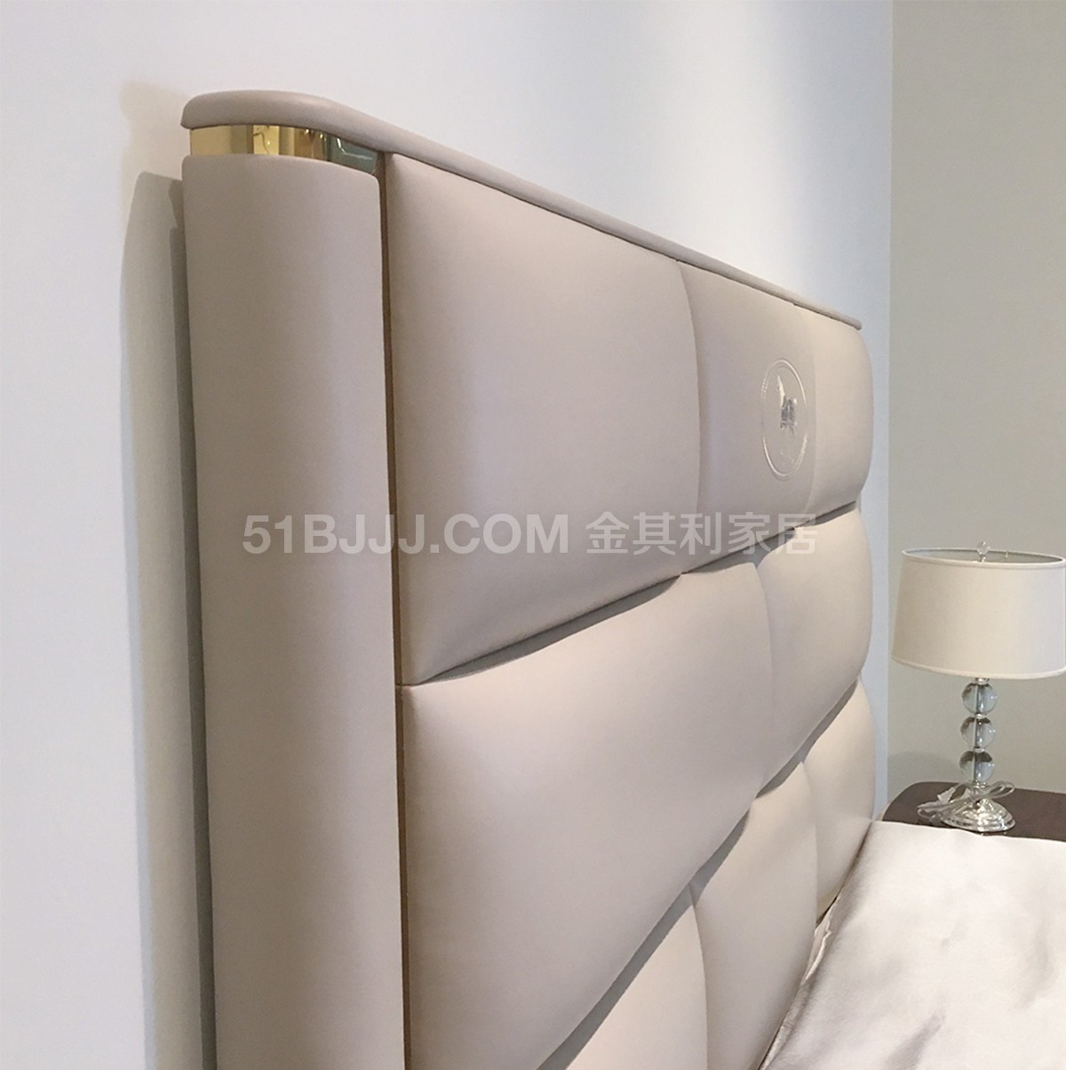 金其利家具芬迪雙人床頭層牛皮經典實木軟包床輕奢后現代家具