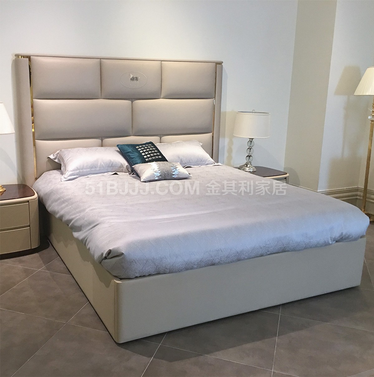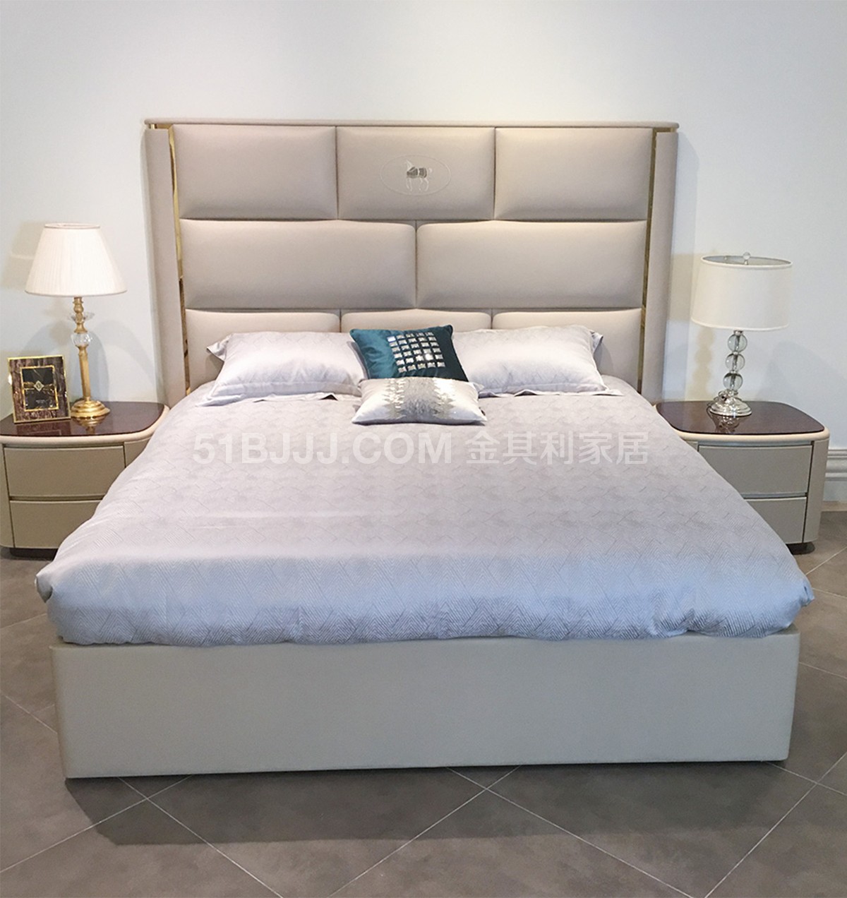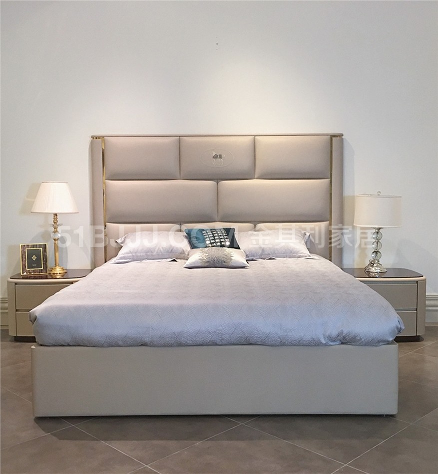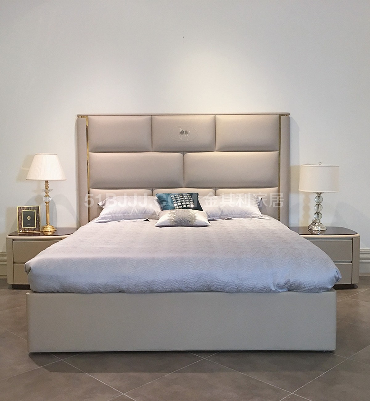 金其利家具芬迪雙人床頭層牛皮經典實木軟包床輕奢后現代家具
