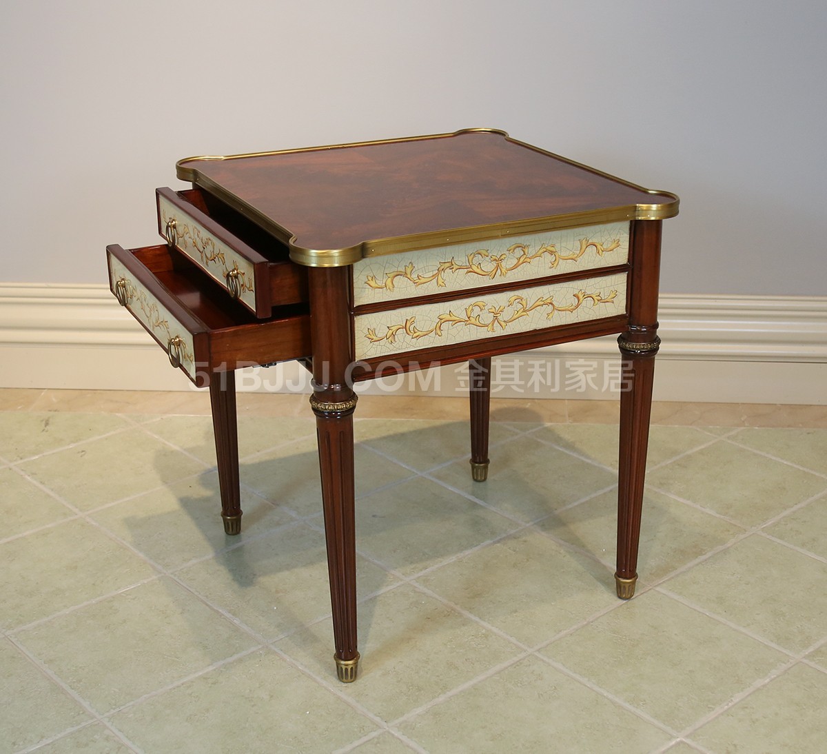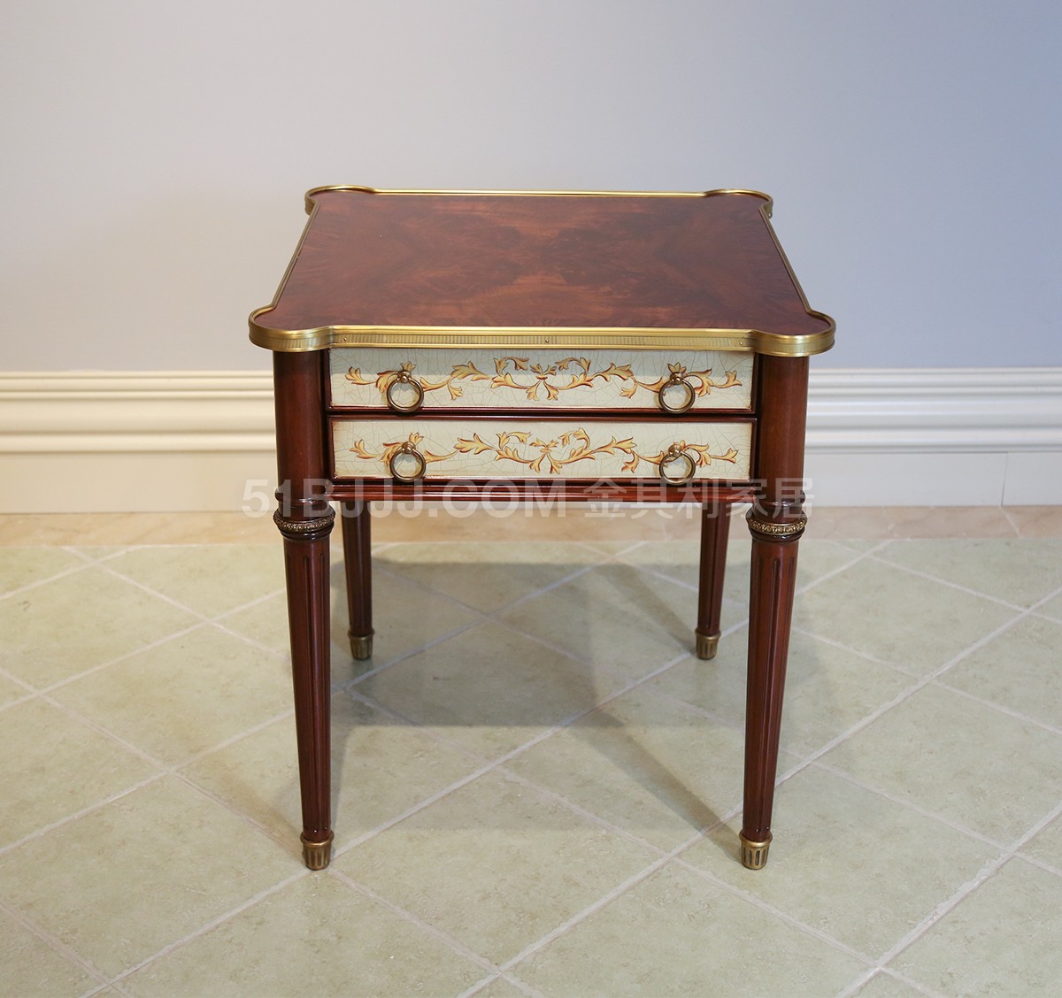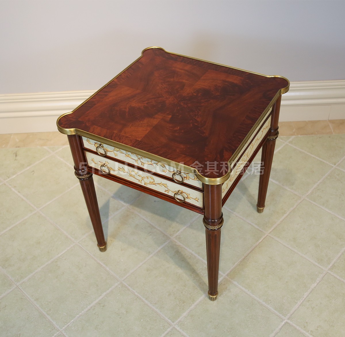 金其利英式家具實木方幾亞歷山大床頭柜別墅大宅歐式古堡彩繪角幾