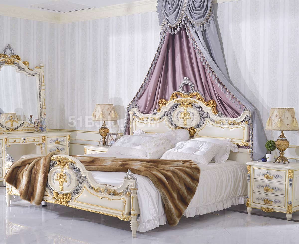 金其利家具米蘭達實木雕刻雙人床