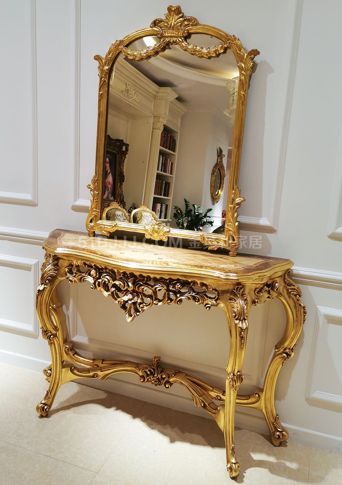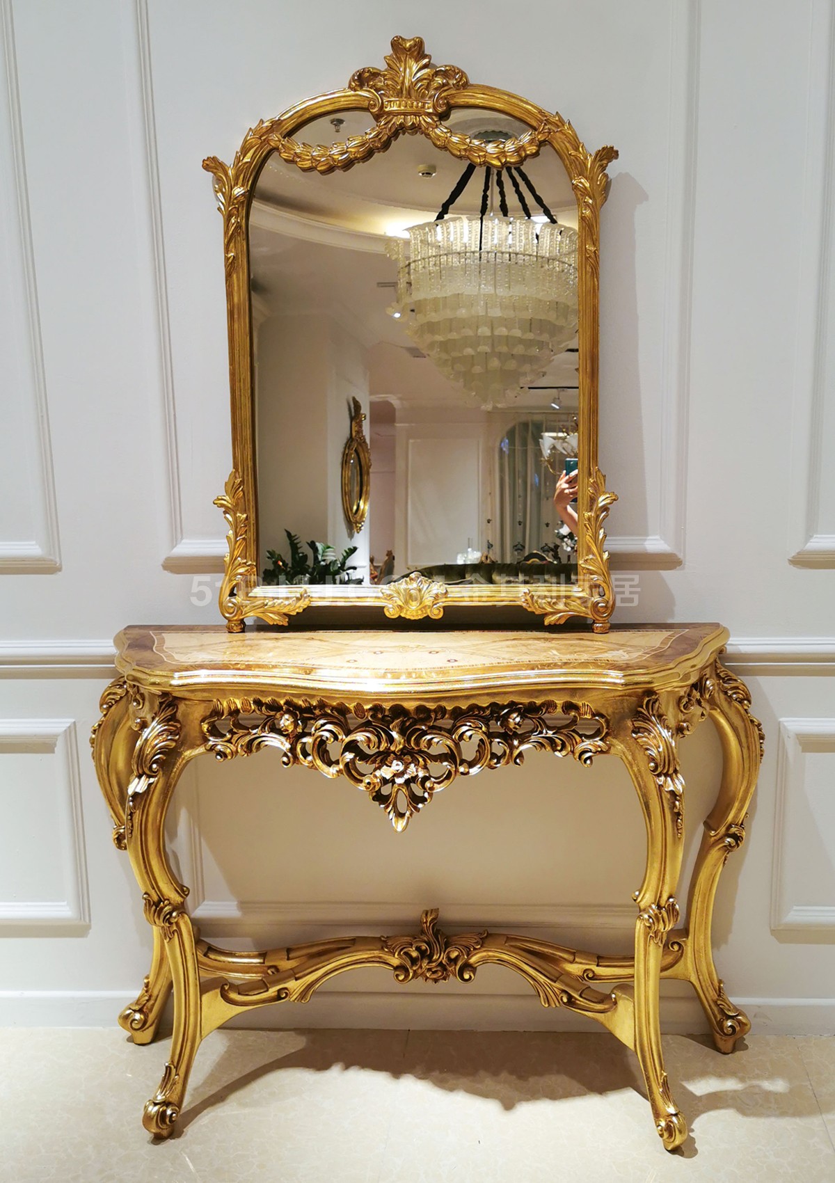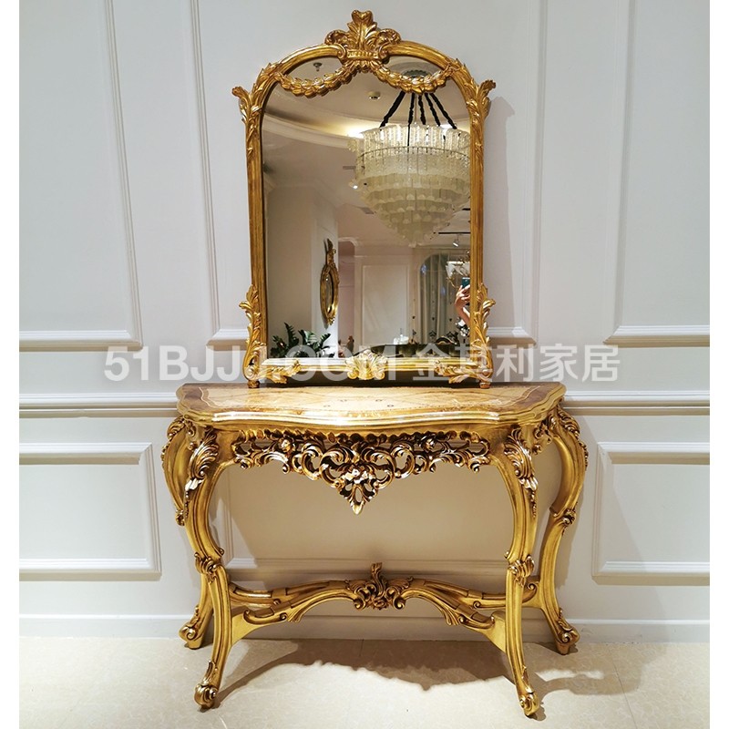金其利家具米蘭達小玄關歐式新古典門廳柜金箔長玄關鏡