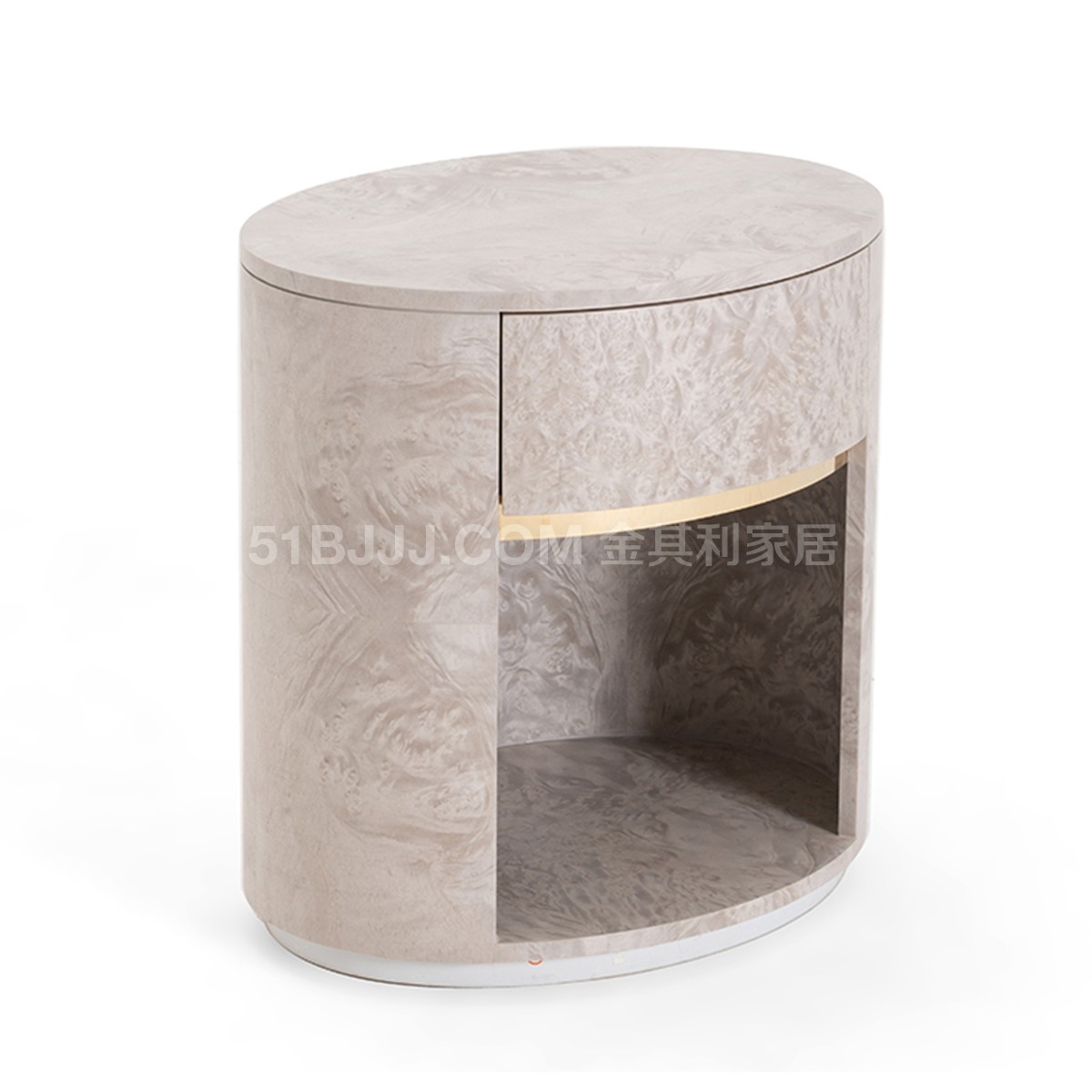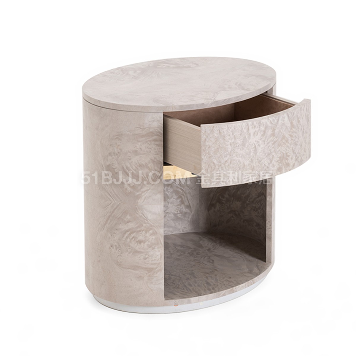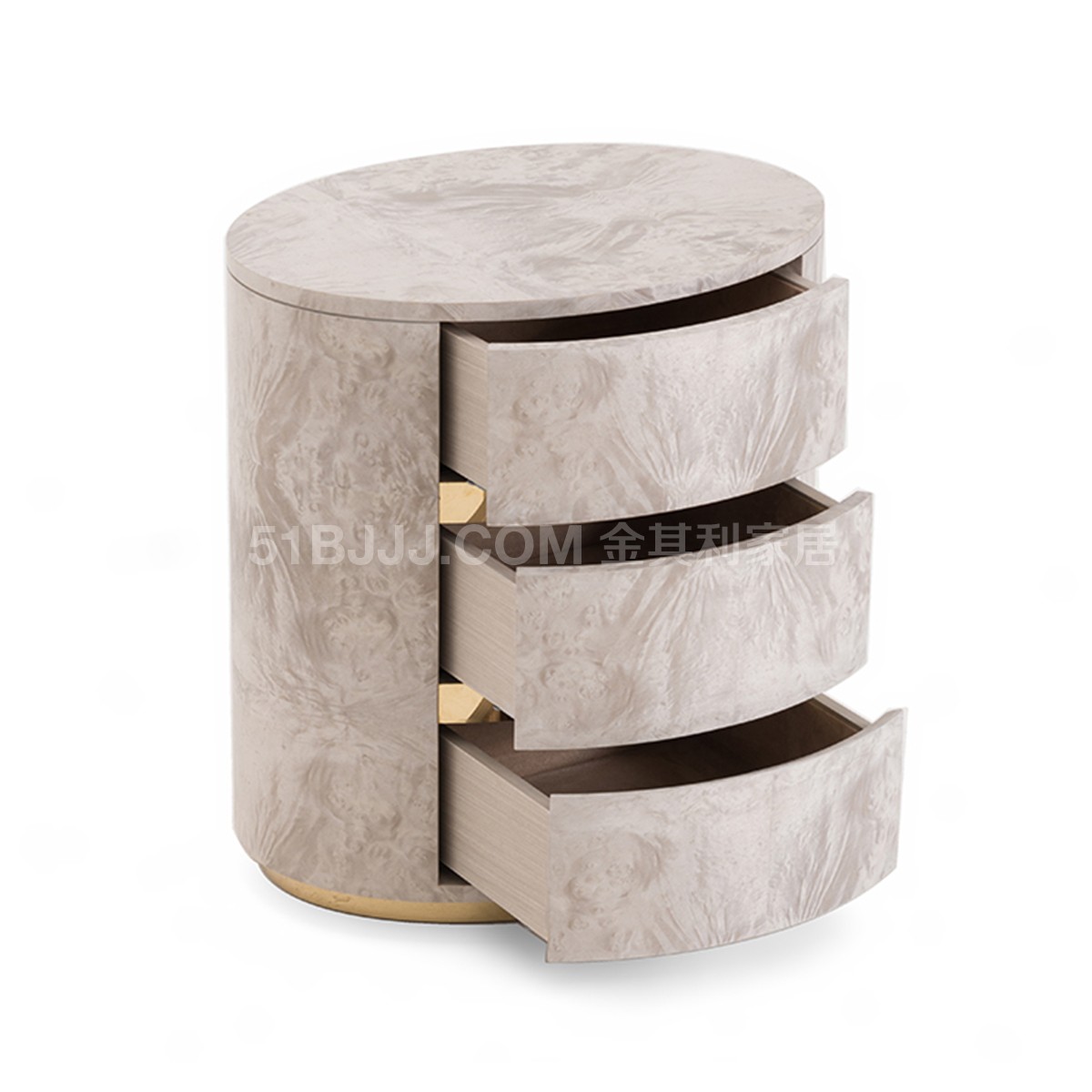 金其利芬迪床頭柜后現代輕奢fendi實木金屬單屜白樹瘤臥室家具