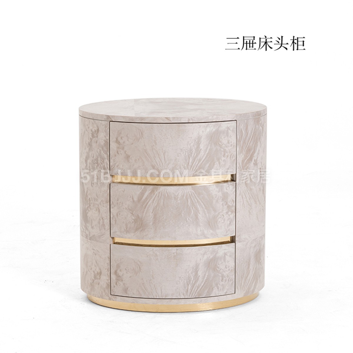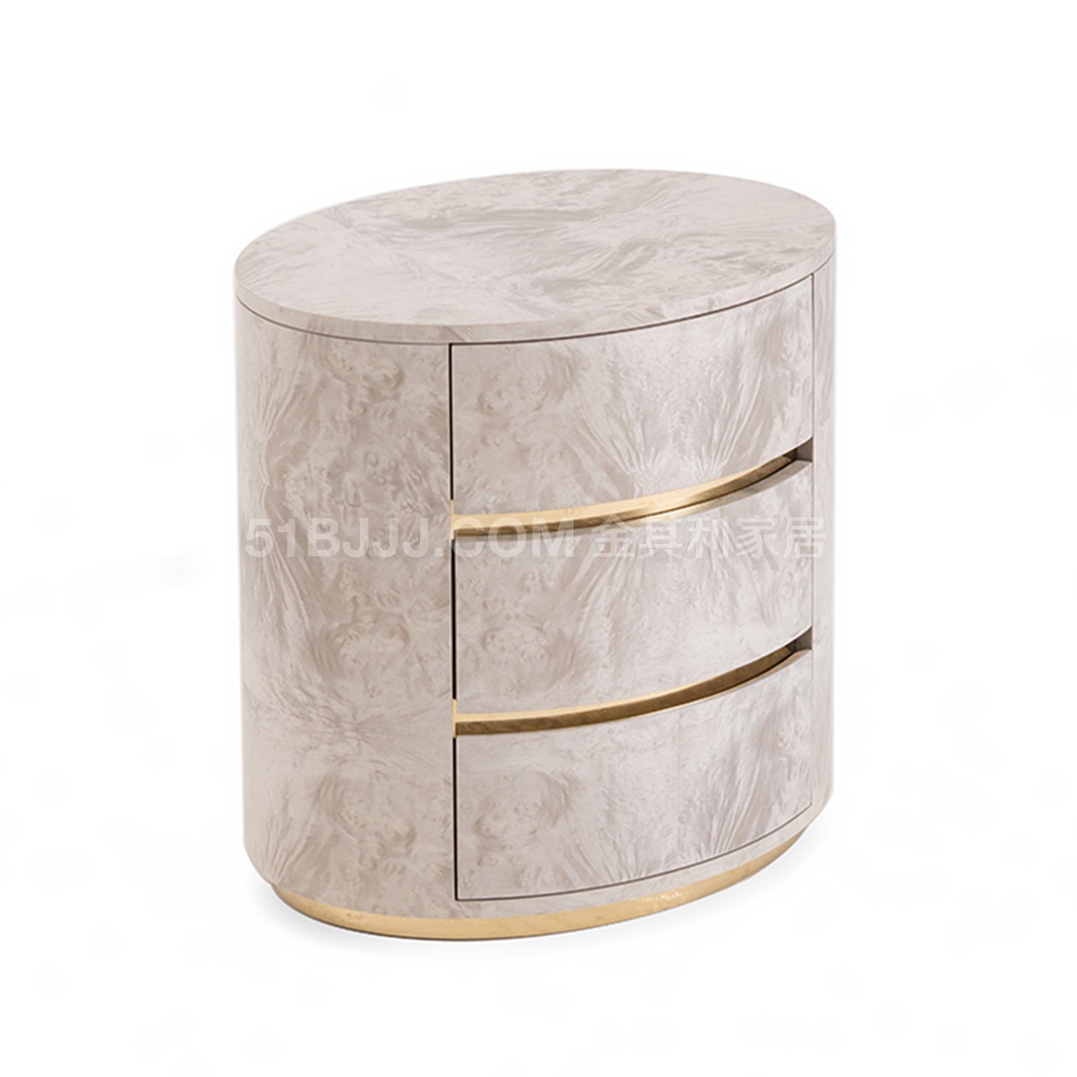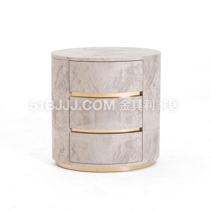 金其利芬迪床頭柜后現代輕奢fendi實木金屬單屜白樹瘤臥室家具