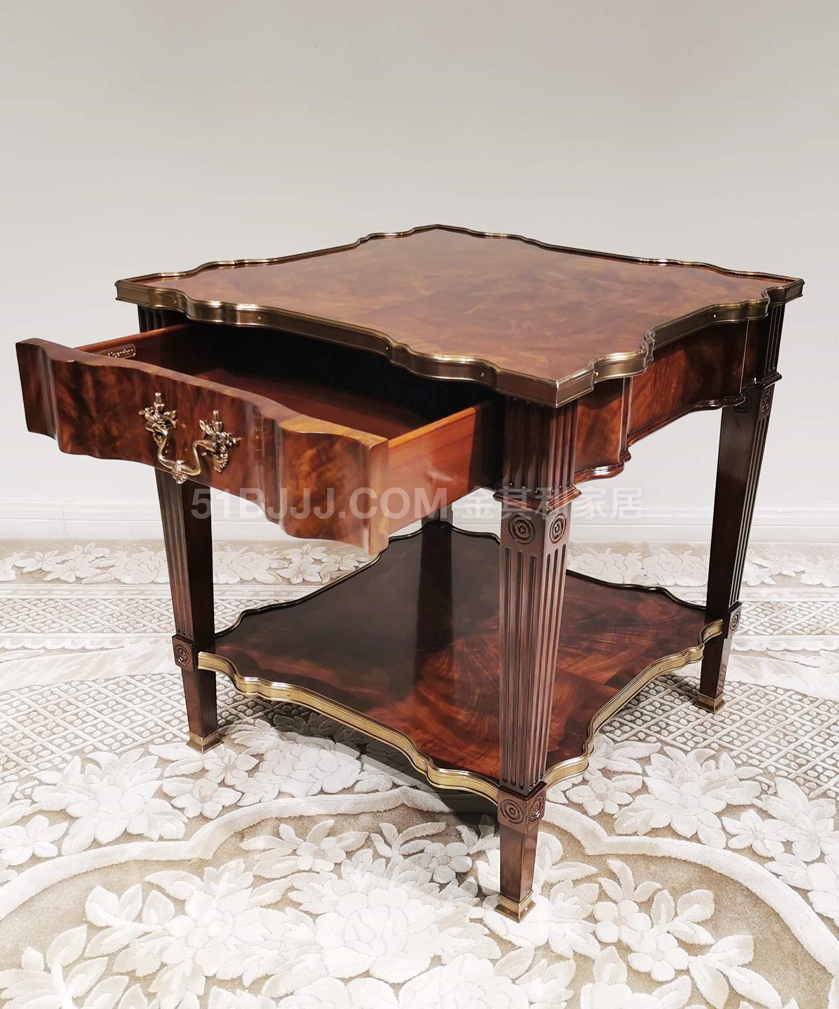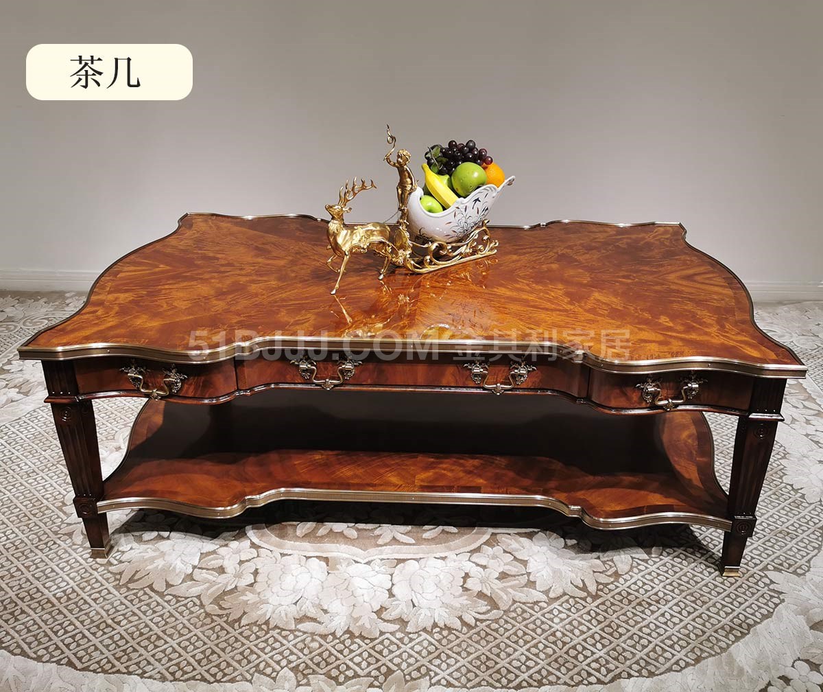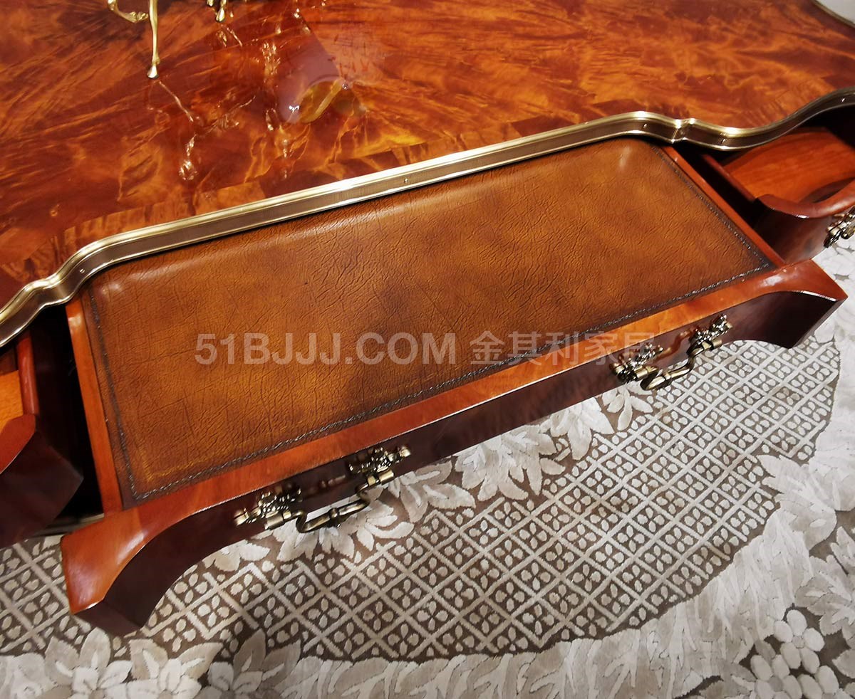 金其利家具亞歷山大進口版家具伯爵茶幾真皮燙金實木銅件角幾