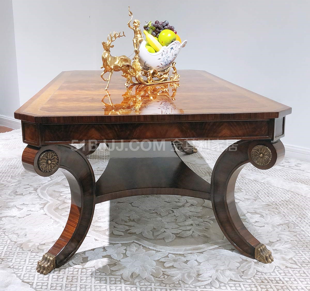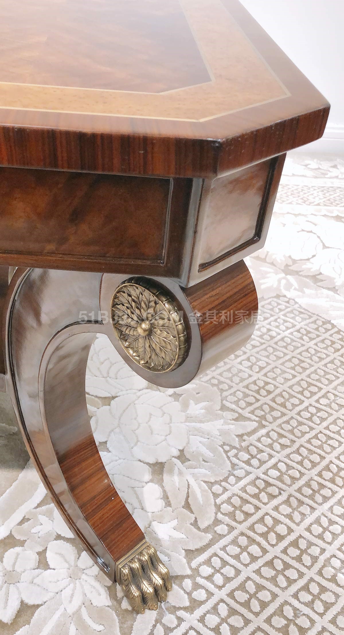 金其利家具長方形茶幾美式新古典銅件鑲嵌別墅大宅會所咖啡大桌