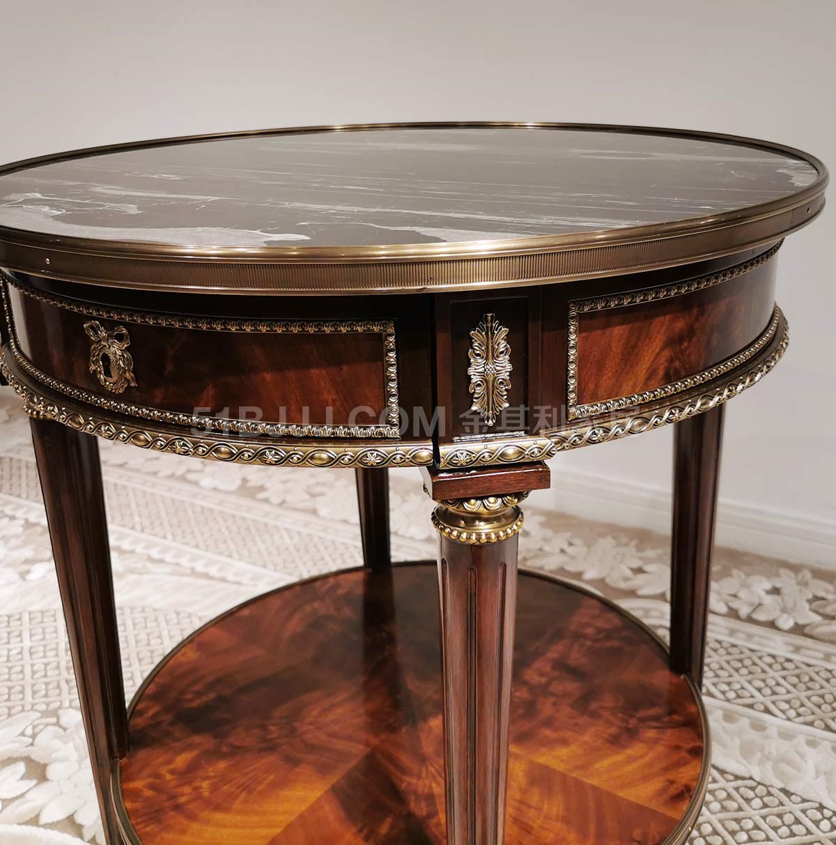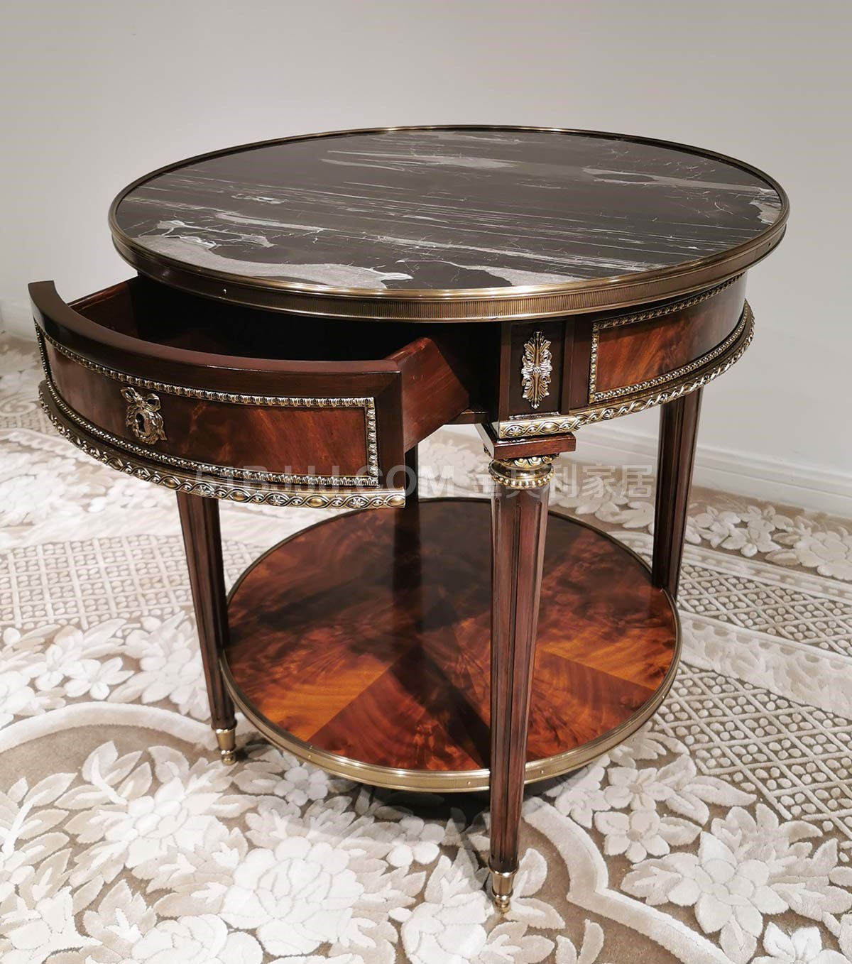 金其利亞歷山大進口版銅件圓幾大理石面沙發邊幾英式新古典