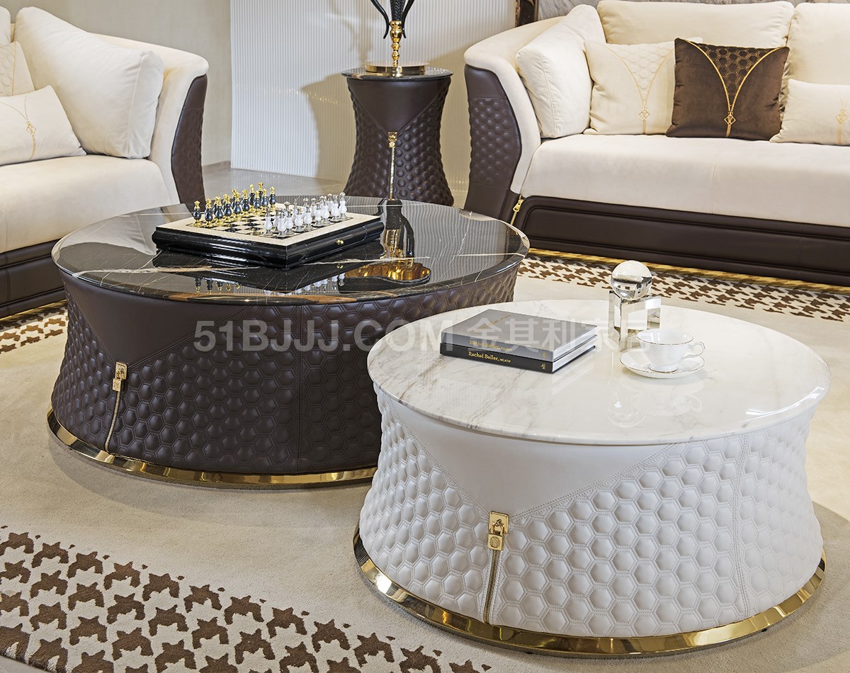 金其利家具turri磨砂牛皮沙發意式輕奢客廳茶幾皮革硬包圓邊幾