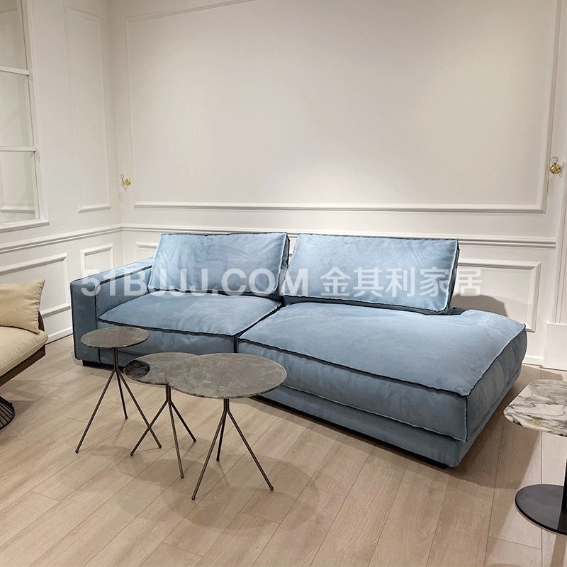 金其利家具意式現代巴思特沙發磨砂牛皮淡藍色科技皮高端別墅款