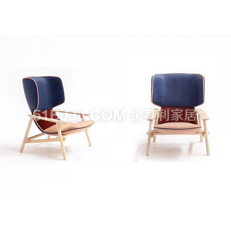 金其利意式頭層牛皮休閑椅客廳藍色布藝單椅現代輕奢別墅家具