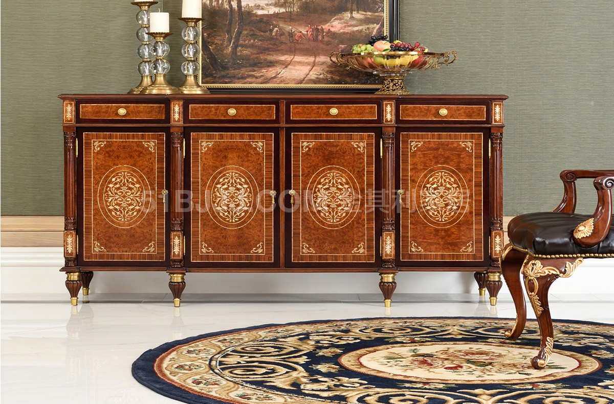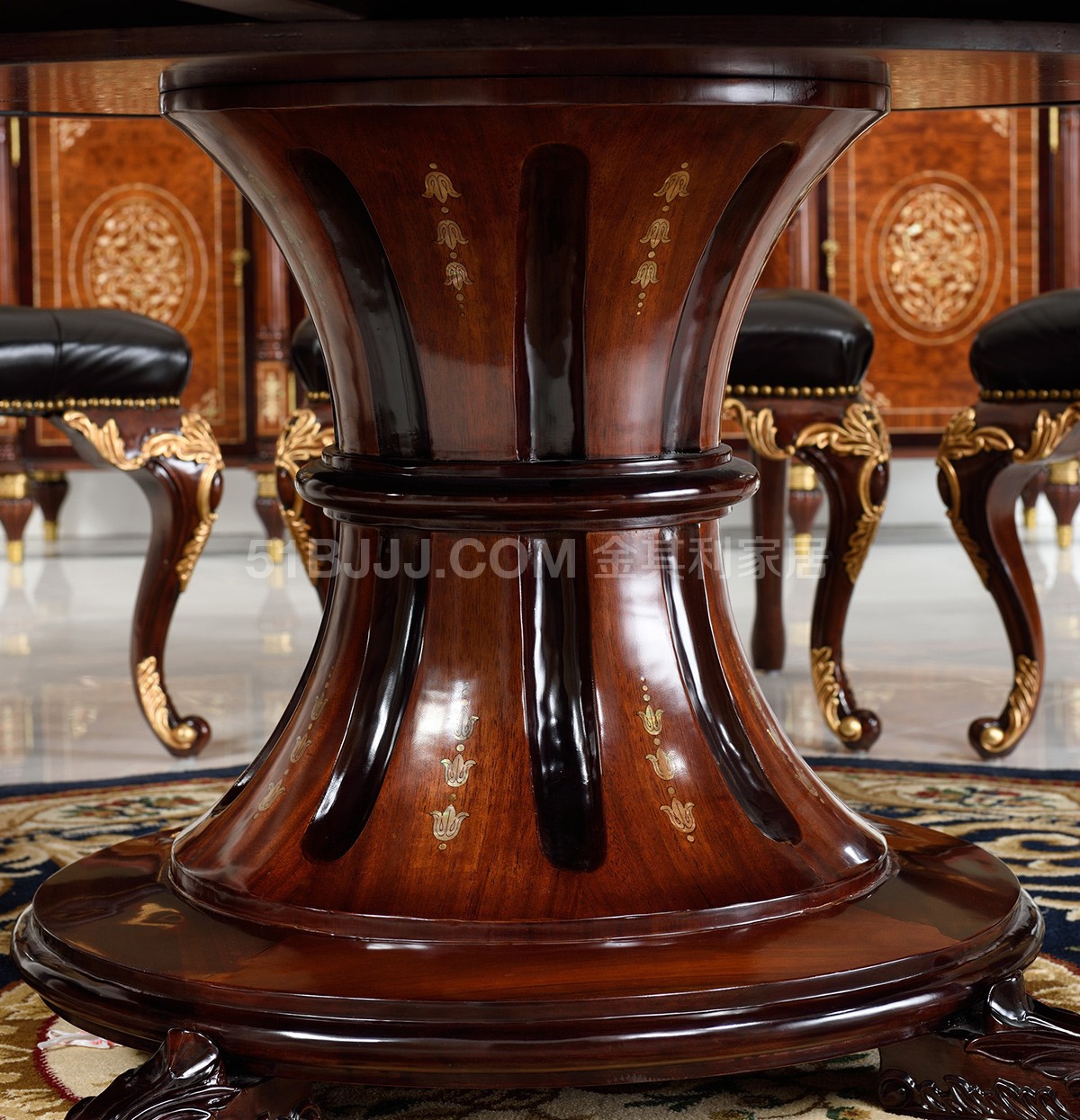 桃花心木貝殼鑲嵌圓桌 英式歐式皇室實木餐廳餐桌椅組合