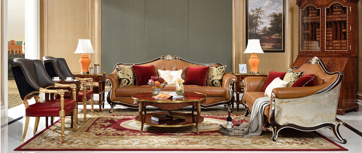 銀箔藝術漆真皮沙發 亞歷山大家具 沙發套裝 英式古堡 皇室沙發套裝