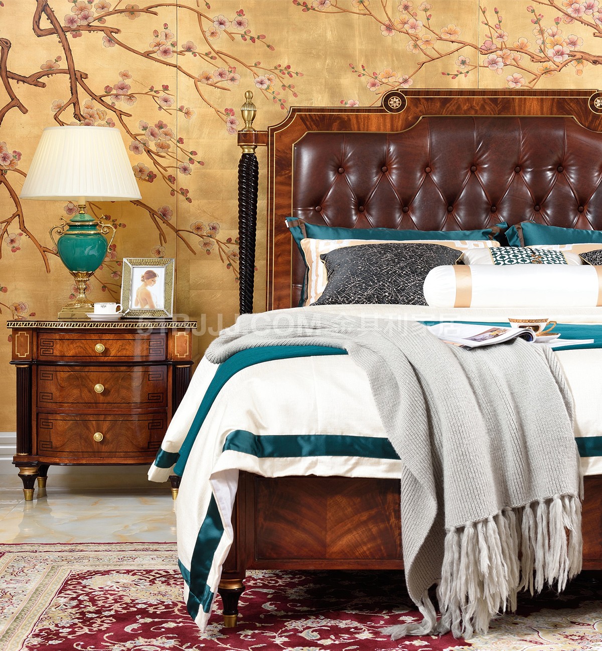 貝殼鑲嵌黃銅裝飾實木床 英式古堡 桃花心木 臥室套裝