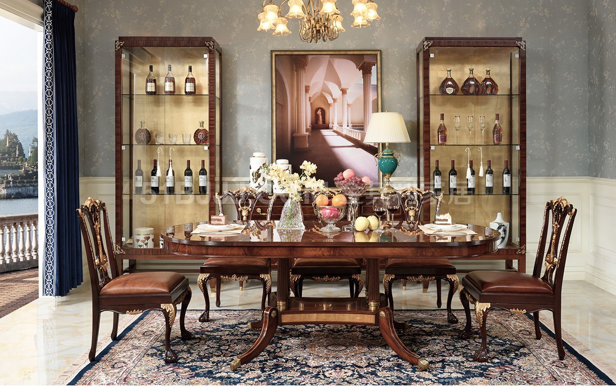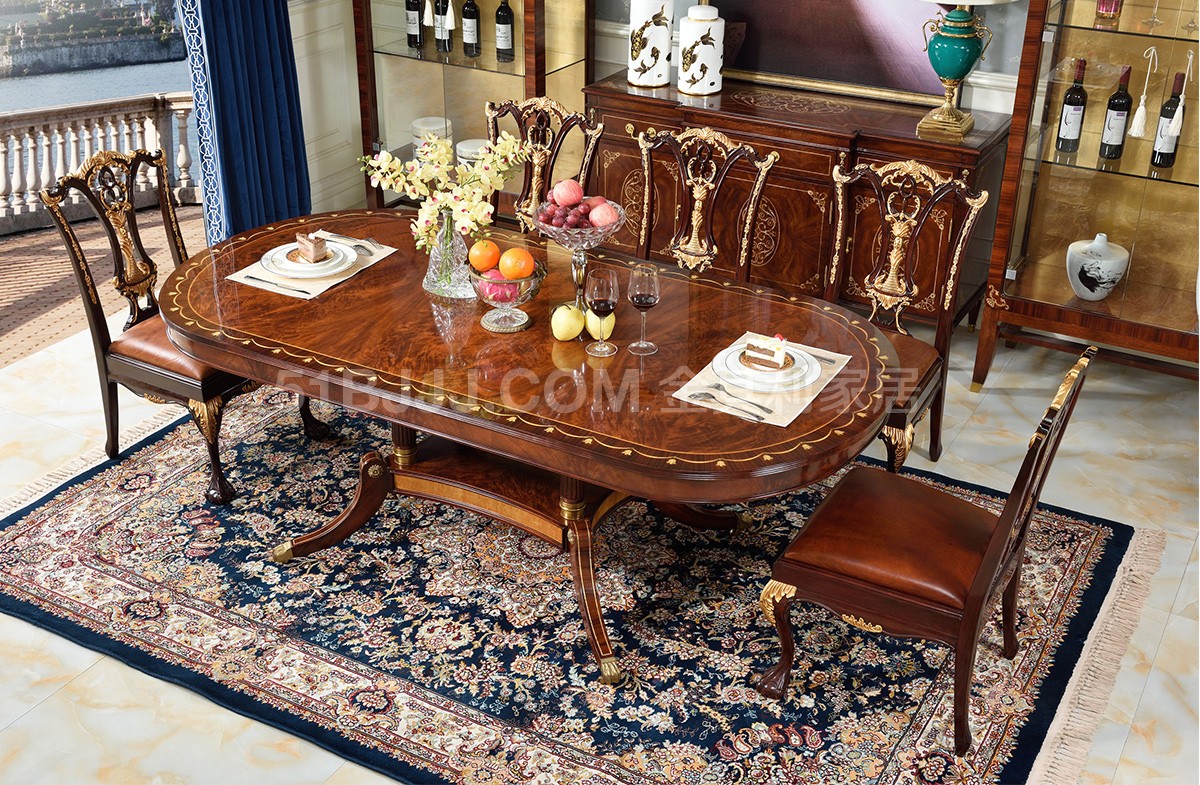 桃花心木貝殼鑲嵌餐桌 皇室英式歐式實木餐廳組合