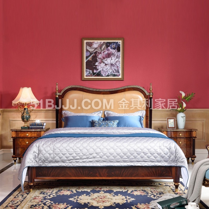 伯爵夫人銅片鑲嵌大床 英式古堡皇室桃花心木實木床 亞歷山大家具