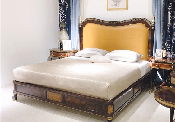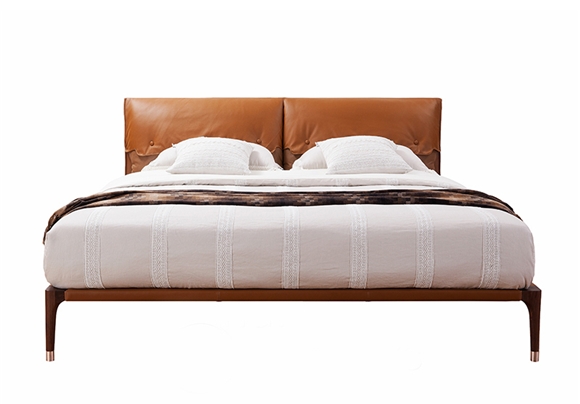 金其利家具亞歷山大進口姜黃色頭層牛皮雙人床銅件