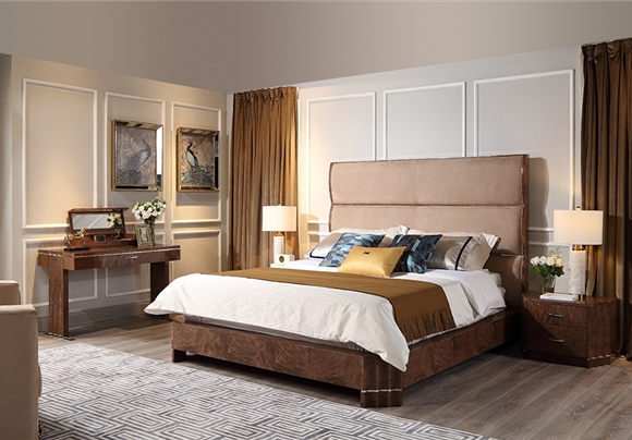 范思哲意式實(shi)木床組合(he) 桃(tao)花心(xin)木精雕(diao)