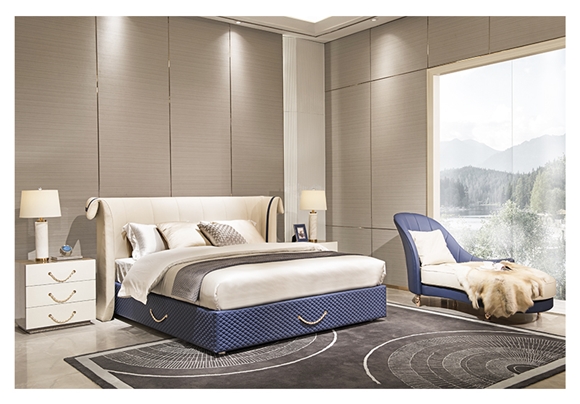 金其利家具輕(qing)奢雙人(ren)床(chuang)現(xian)代床(chuang)頭柜visionary貴妃榻(ta)意式簡約皮床(chuang)