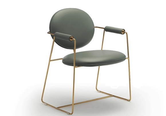 金其利家具意式輕奢后現代扶手餐椅巴斯特牛皮金屬會所大宅書椅