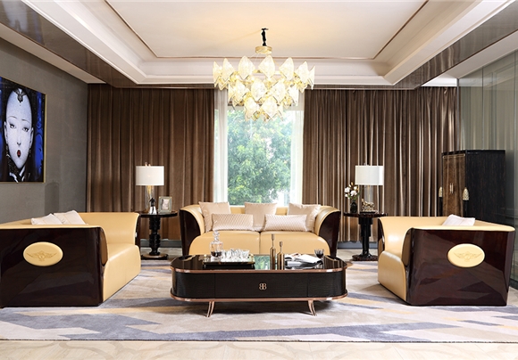 時尚黑檀加(jia)小牛皮沙發 金其(qi)利低奢客廳后現(xian)代輕奢