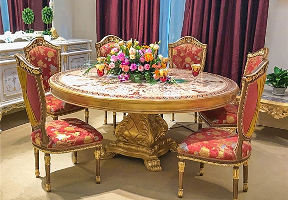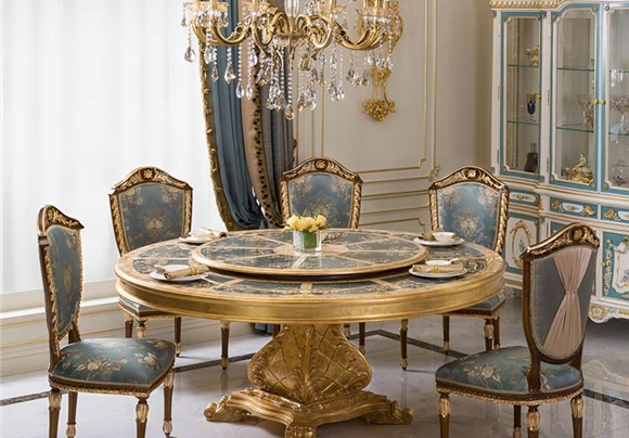 金其利家具米蘭餐桌椅別墅大宅會所歐法拼花新古典加大圓桌