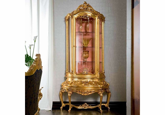 金其利法式宮廷金箔酒柜客廳展示柜意大利歐式玻璃單門酒柜
