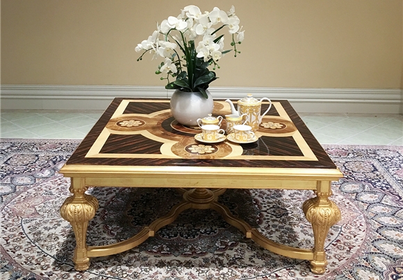 金其利家具意式實木雕刻方茶幾歐式桌面拼花嵌貝provasi家具實拍