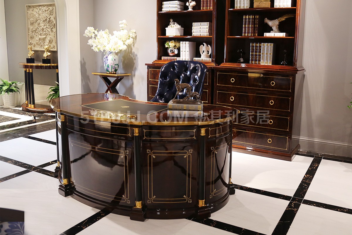 奧斯卡書桌 銅條貝殼冷壓鑲嵌真皮燙金桌面 牛津印象系列 英式實木書桌