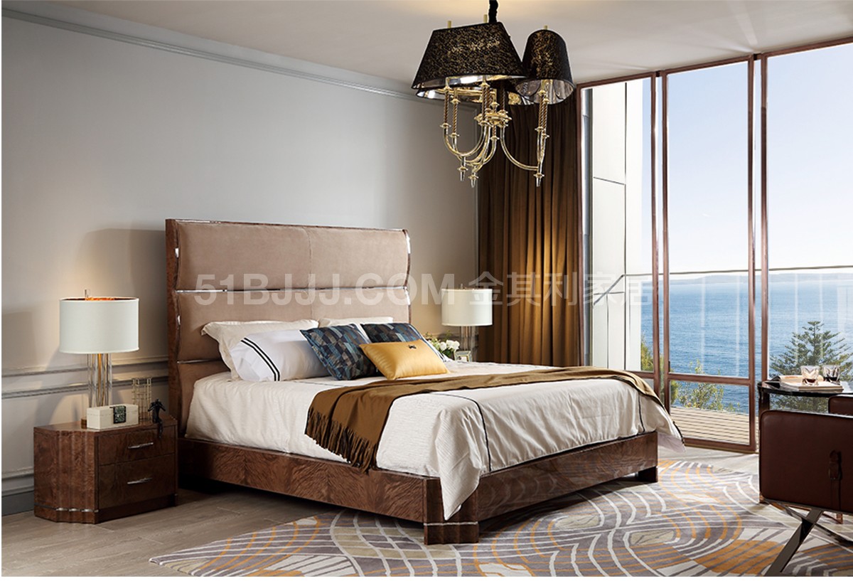 后現代時尚FD系列大床 薄木拼花金屬鑲嵌 簡約時尚輕奢 低奢臥室組合