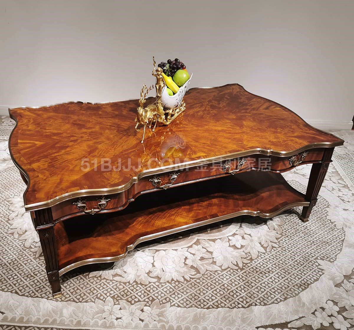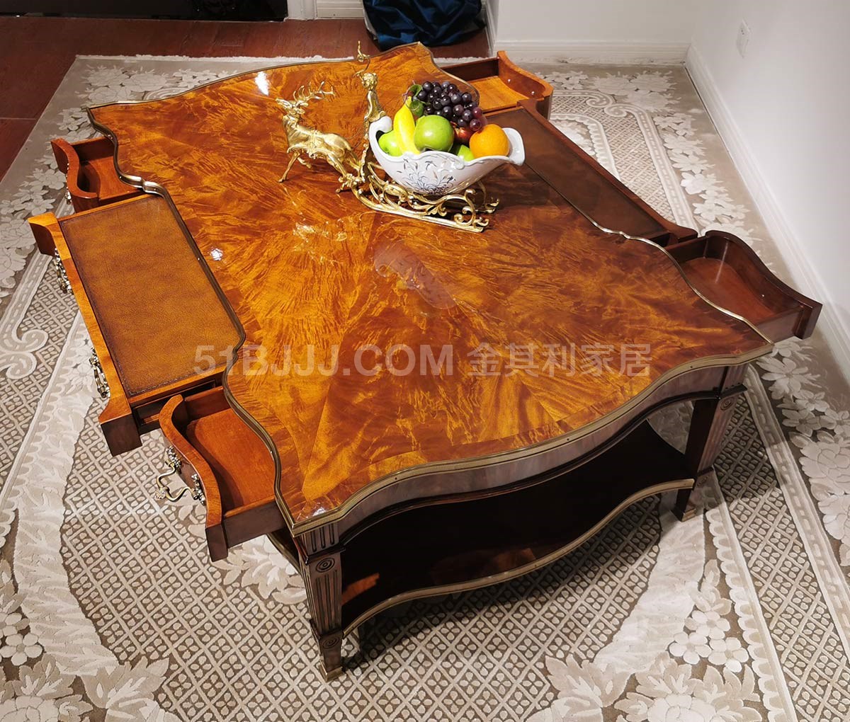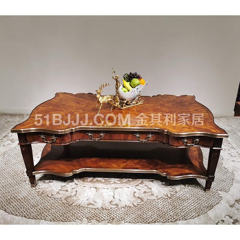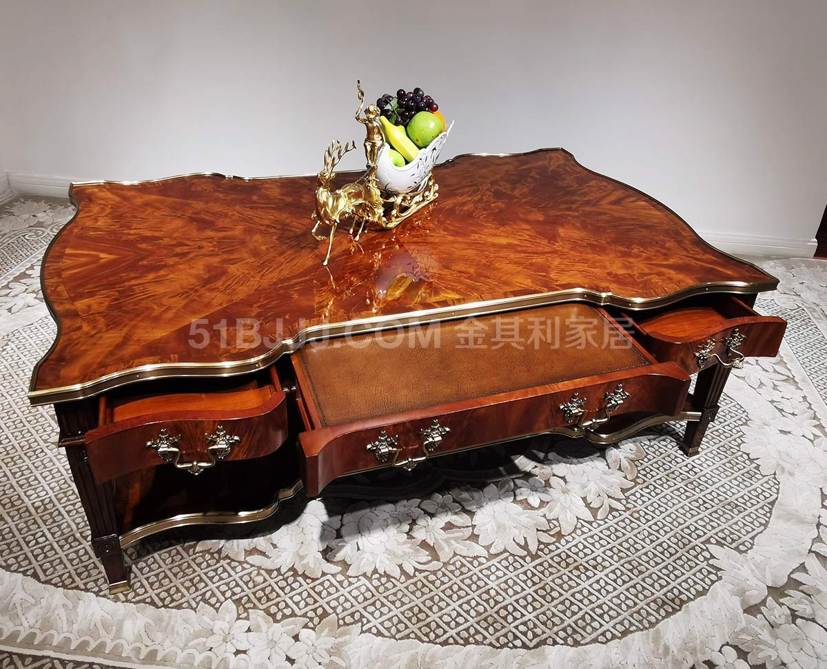 金其利家具亞歷山大進口版家具伯爵茶幾真皮燙金實木銅件角幾