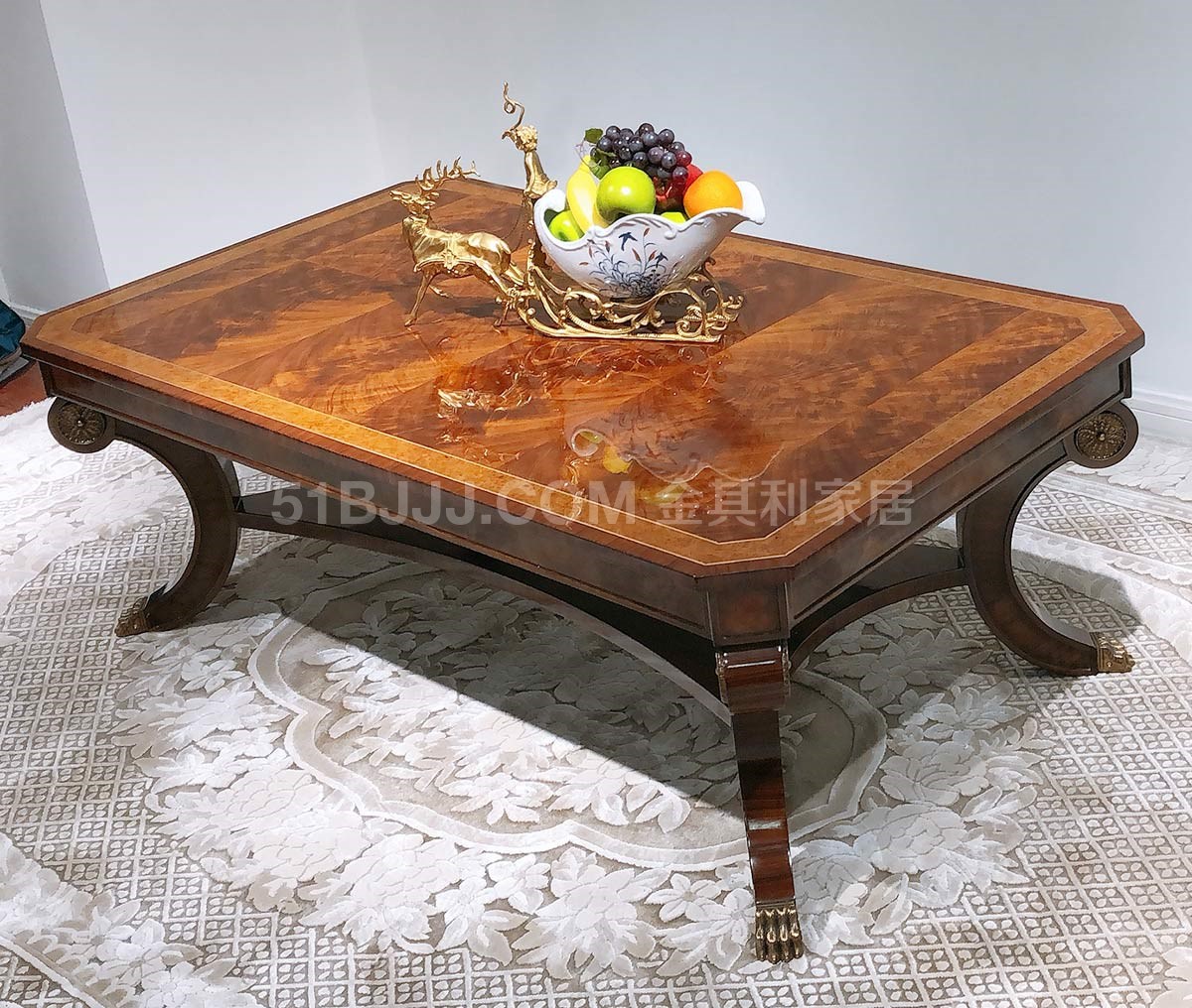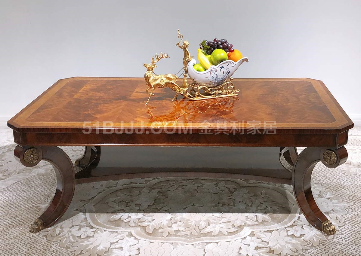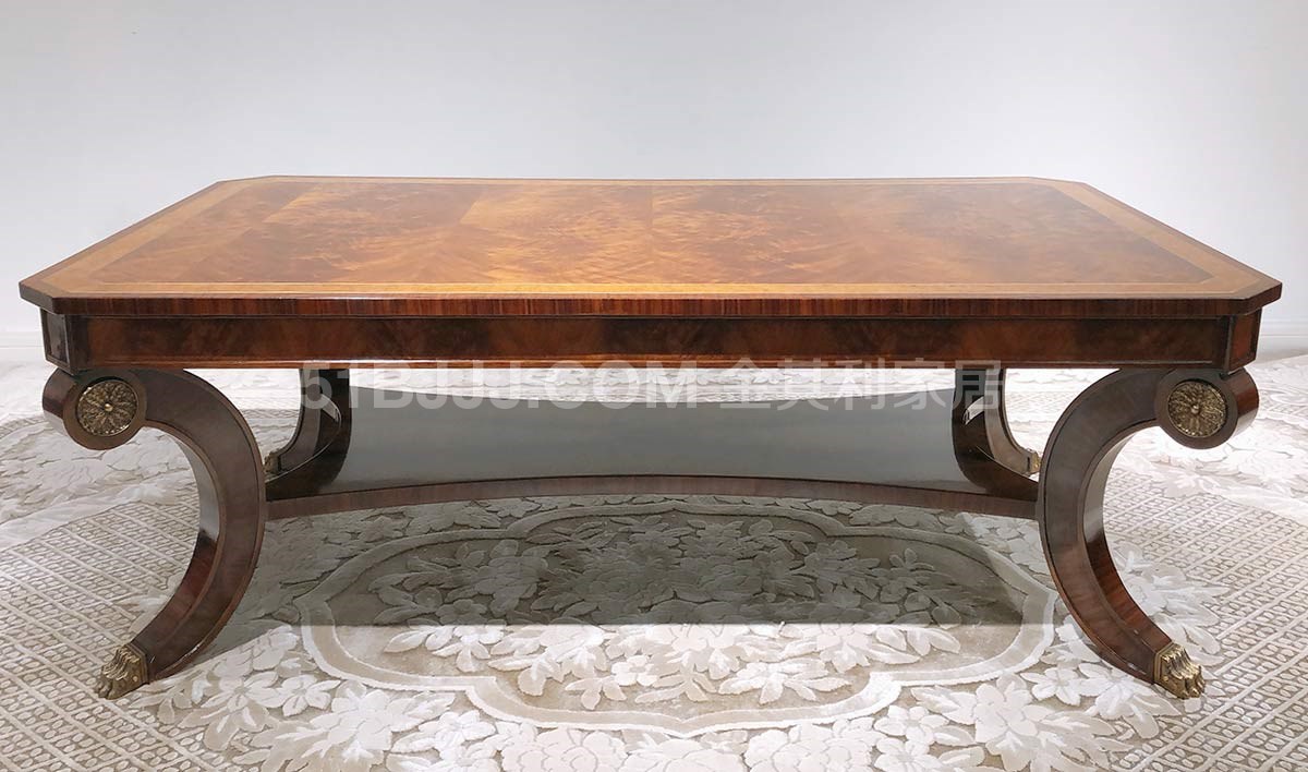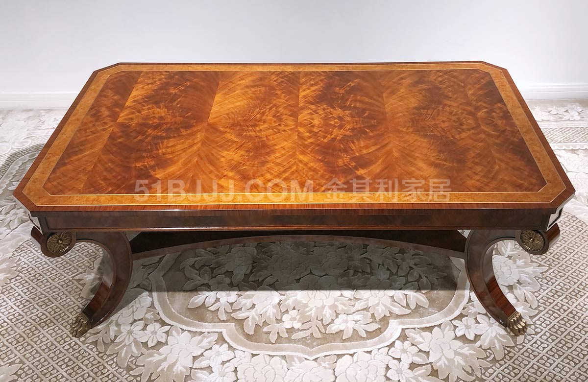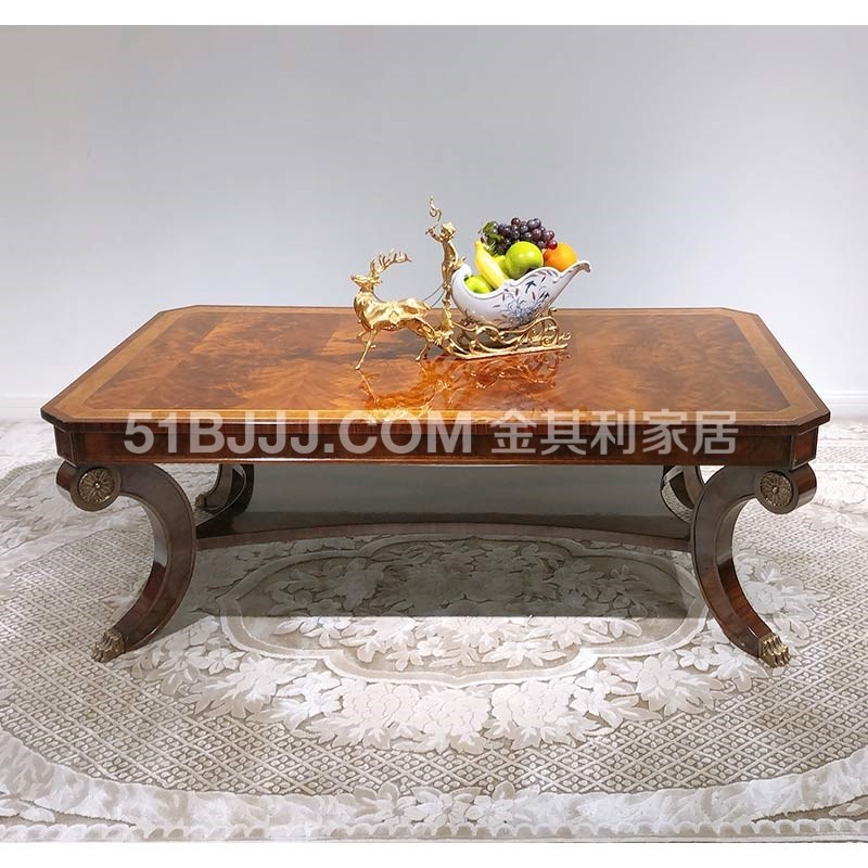 金其利家具長方形茶幾美式新古典銅件鑲嵌別墅大宅會所咖啡大桌