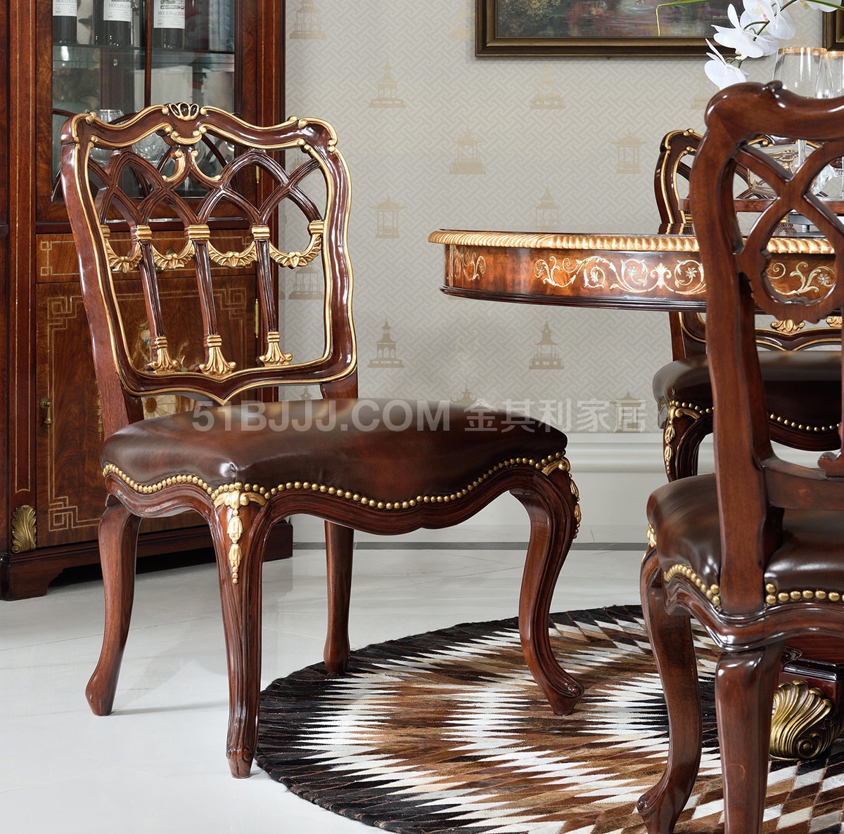 桃花心木貝殼鑲嵌圓桌 皇室英式歐式實木餐廳組合
