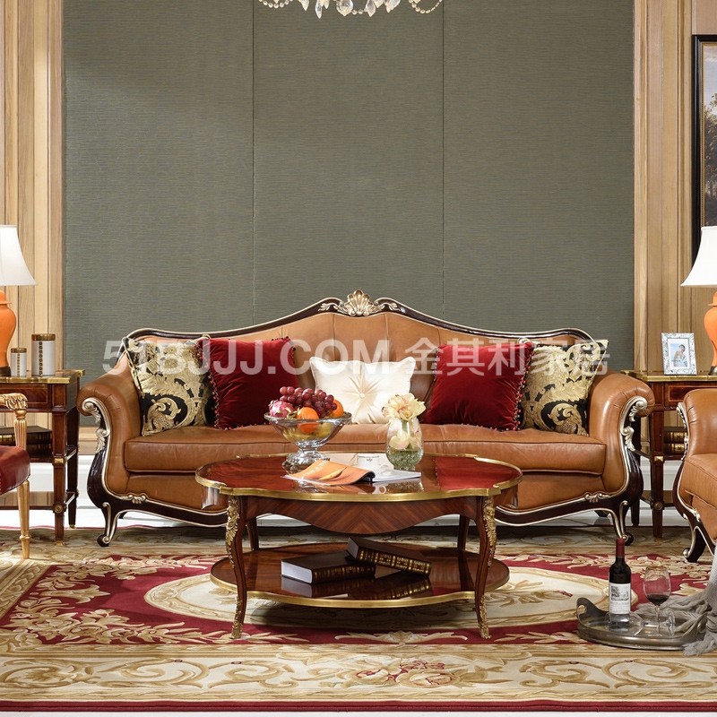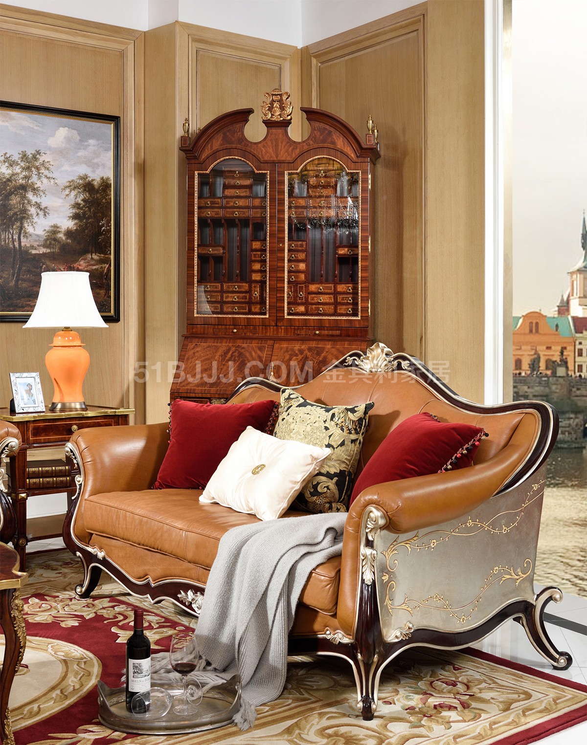 銀箔藝術漆真皮沙發 亞歷山大家具 沙發套裝 英式古堡 皇室沙發套裝