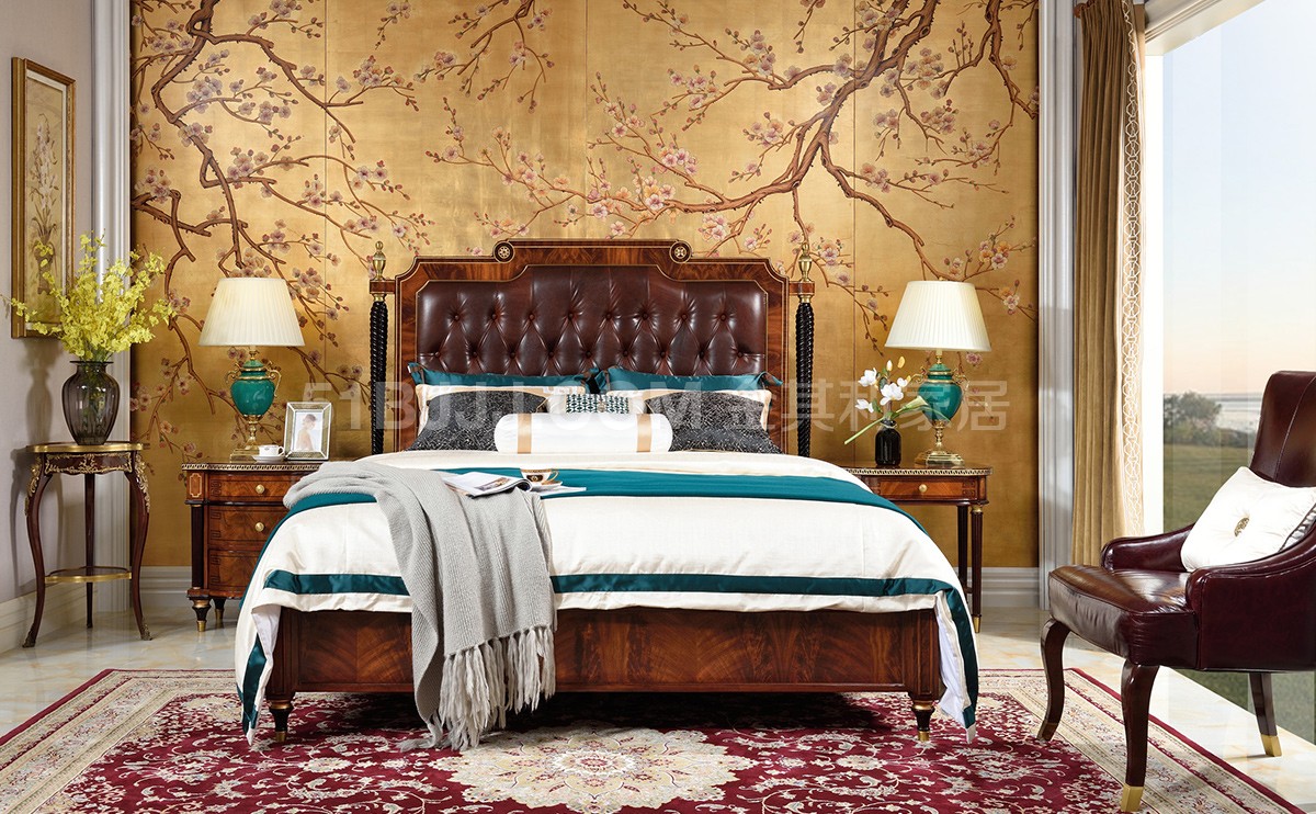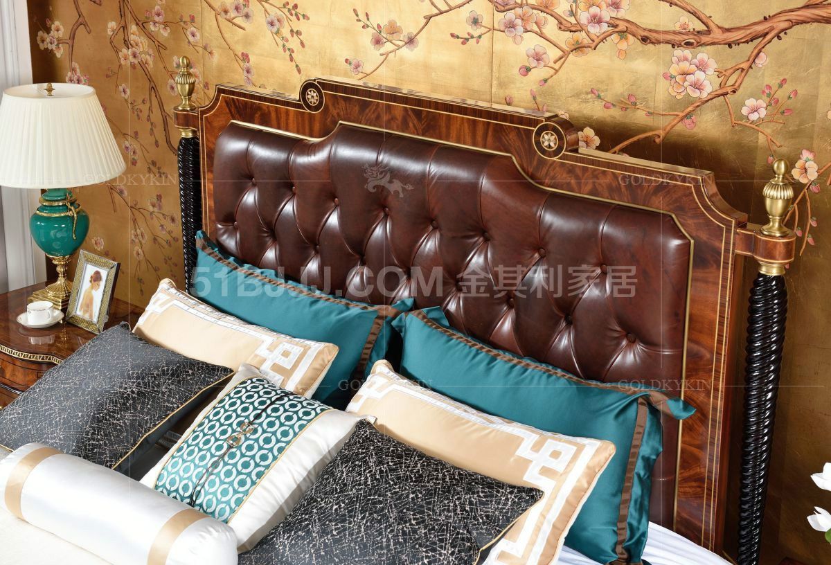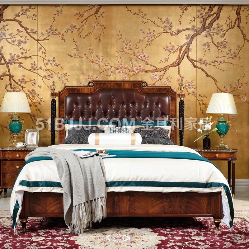 貝殼鑲嵌黃銅裝飾實木床 英式古堡 桃花心木 臥室套裝