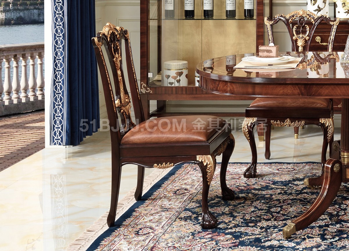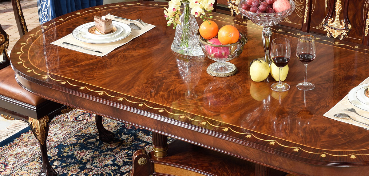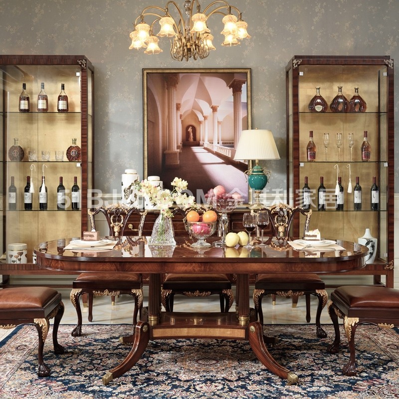 桃花心木貝殼鑲嵌餐桌 皇室英式歐式實木餐廳組合
