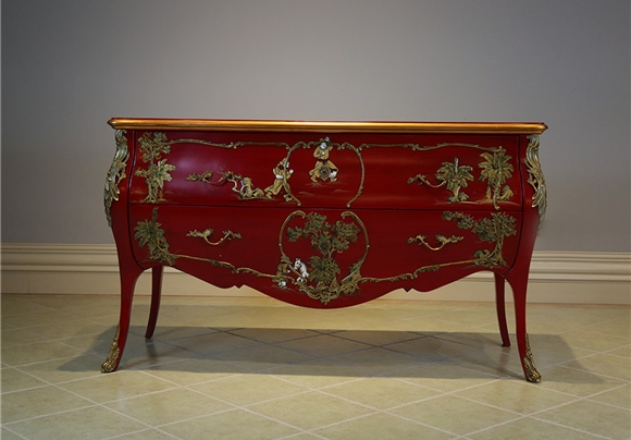 金其利家(jia)具 亞歷山大英(ying)式古堡(bao)沙發背幾貝殼(ke)銅件儲(chu)物抽屜(ti)款玄(xuan)關柜