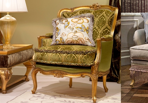 SAVIO布藝扶手(shou)椅 意式(shi)(shi)法式(shi)(shi)歐(ou)式(shi)(shi)精雕貼箔扶手(shou)椅