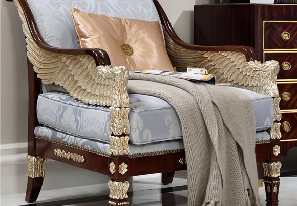SAVIO布藝扶手椅(yi) 意(yi)式法式歐式精雕貼箔扶手椅(yi)