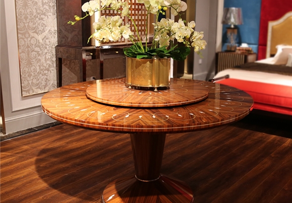 薄木拼花鋼琴漆圓(yuan)餐(can)桌 時尚(shang) 后現代餐(can)桌餐(can)椅