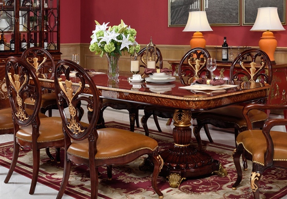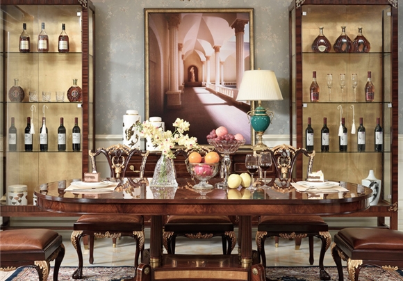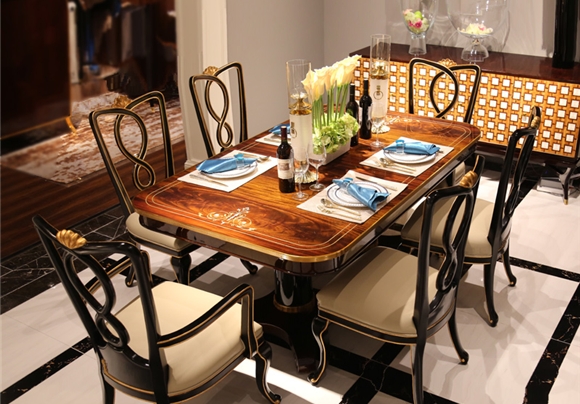桃花心木貝殼鑲嵌(qian)餐桌 皇室英式(shi)(shi)歐式(shi)(shi)餐廳(ting)組(zu)合