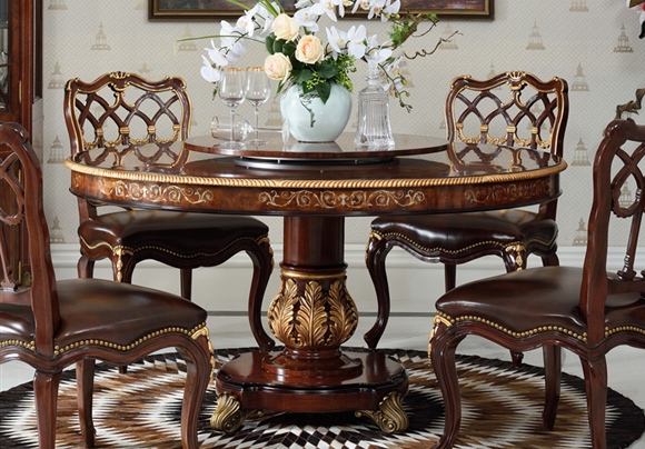 桃花心木貝(bei)殼鑲嵌圓桌 英(ying)式歐(ou)式皇(huang)室實(shi)木餐廳餐桌椅組(zu)合