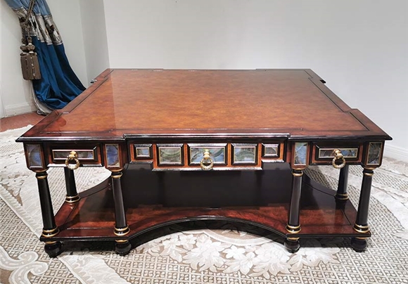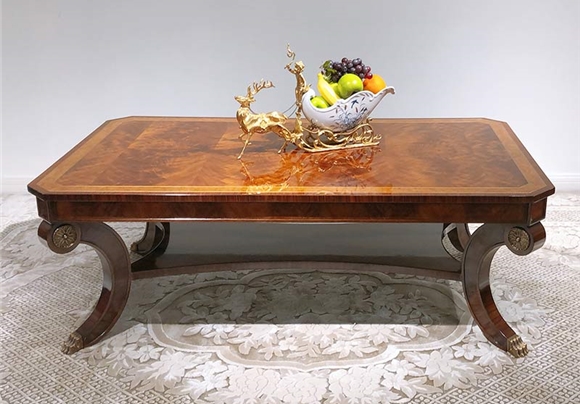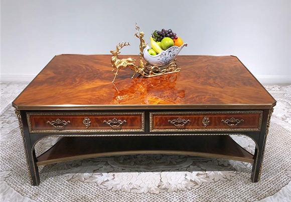金(jin)其利家具長(chang)方形茶幾美式新古典(dian)銅件鑲嵌別墅大宅會(hui)所咖啡大桌